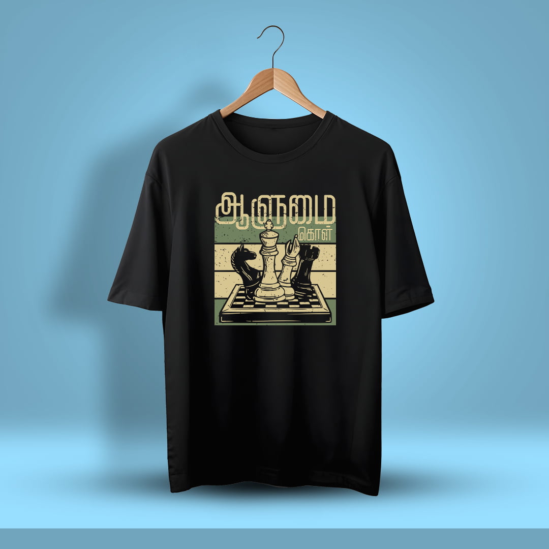 Aalumai Kol Tamil Oversized T-Shirt showcases Tamil pride with a bold design, offering comfort and style for those who embody strength and leadership.