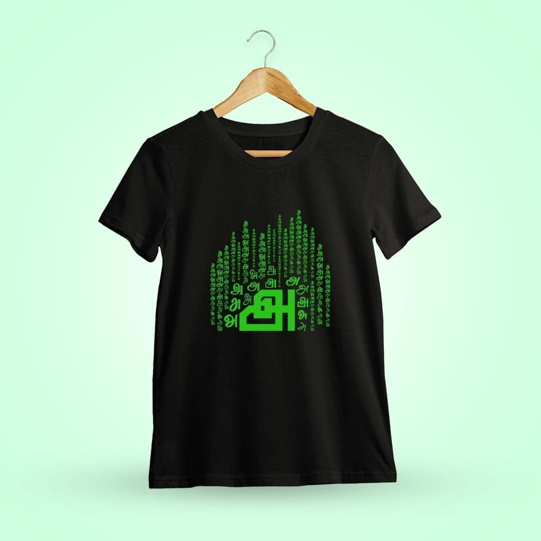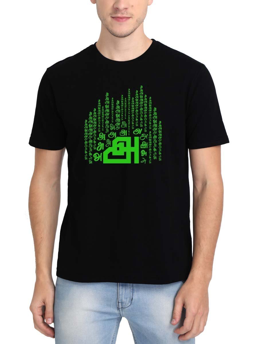 Elevate your style with our Aana Tamil Uyir Eluthukkal T-shirt as Men Half Sleeve, showcasing the timeless beauty of Tamil script.