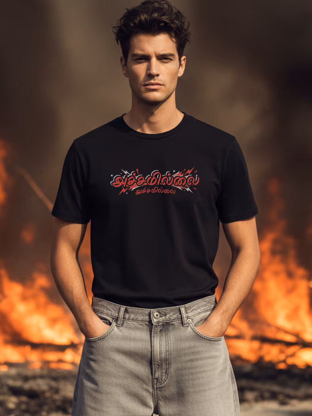 Achamillai T-Shirt inspires courage and confidence. Crafted for comfort, it symbolizes fearless Tamil spirit with a modern streetwear aesthetic that makes a strong statement.