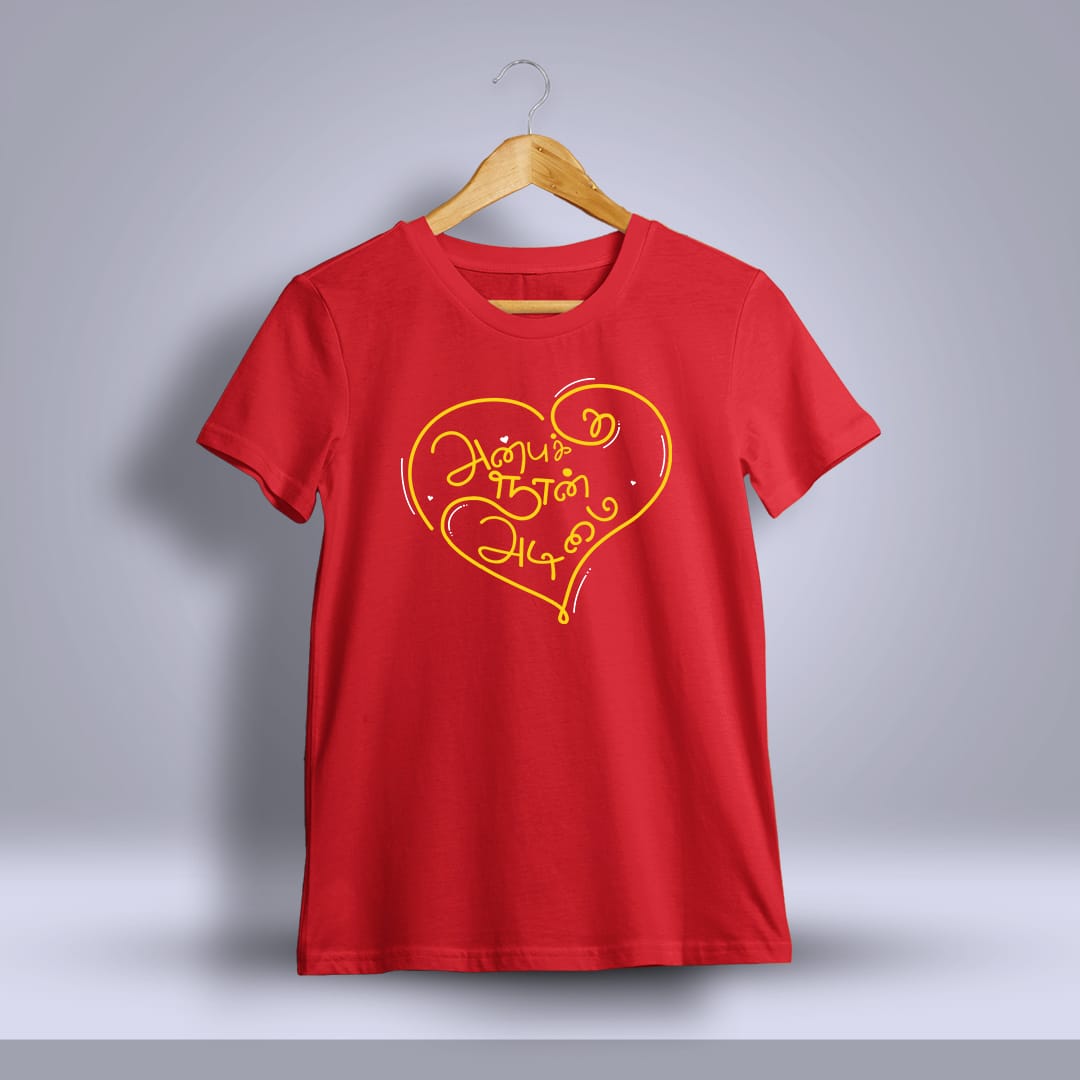 Show your devotion with the “Anbukku Naan Adimai” Tamil T-Shirt. A striking design that proudly celebrates loyalty to love and the power of heartfelt emotions.