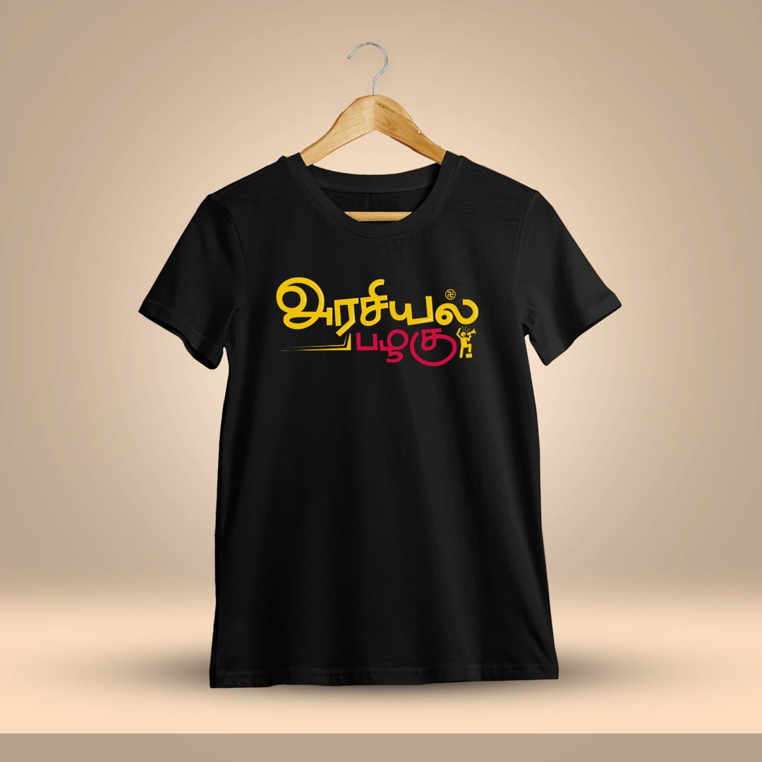 Make a political statement with our ‘Arasiyal Pazhagu’ T-shirt. Shop now as Men Half Sleeve T-shirt!