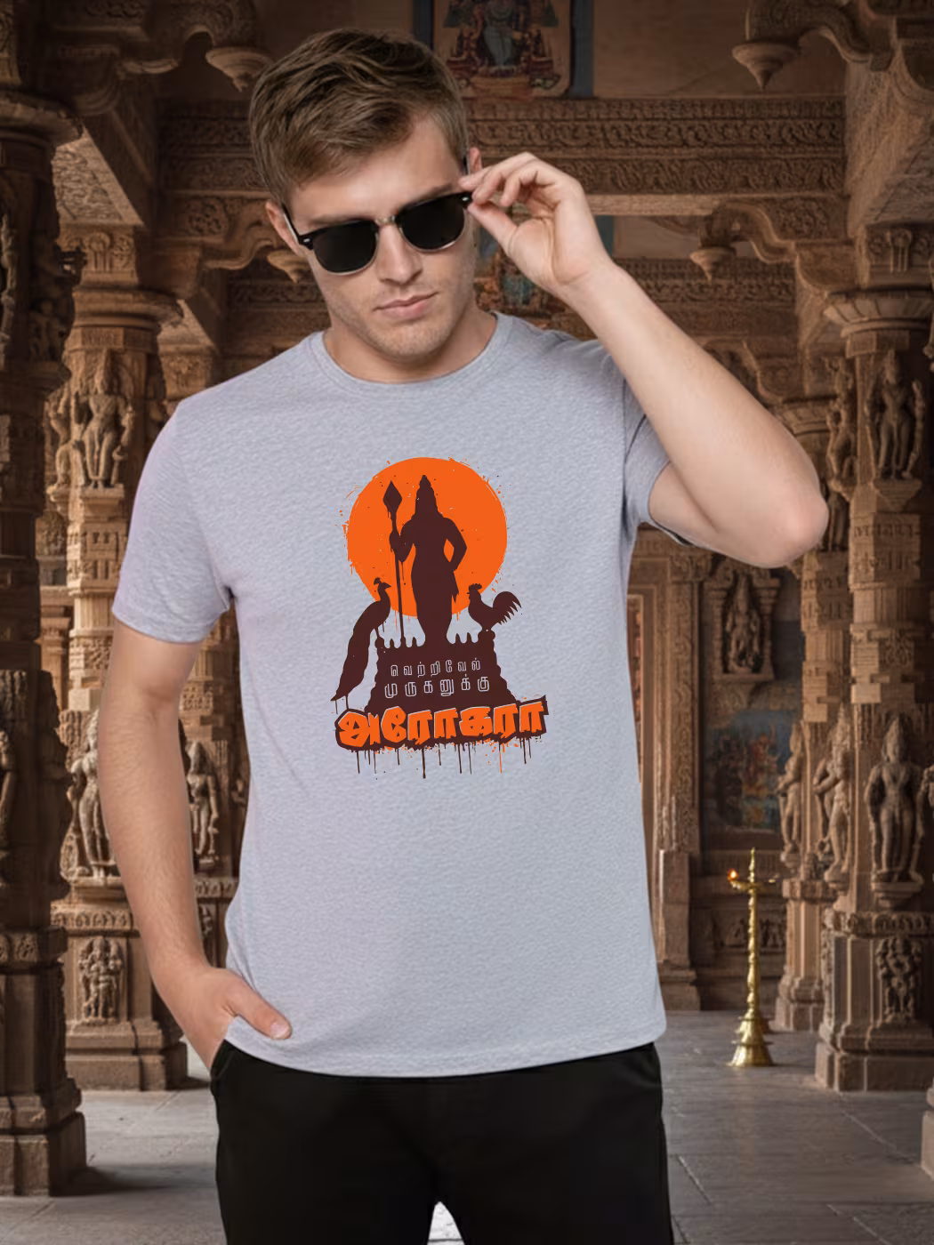Celebrate Tamil heritage with Arogara T-Shirt, premium cotton half sleeve, offering comfort and cultural style. Ideal for casual wear, traditional events, or gifting with pride.