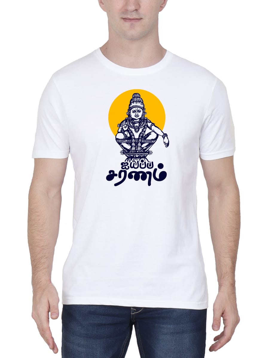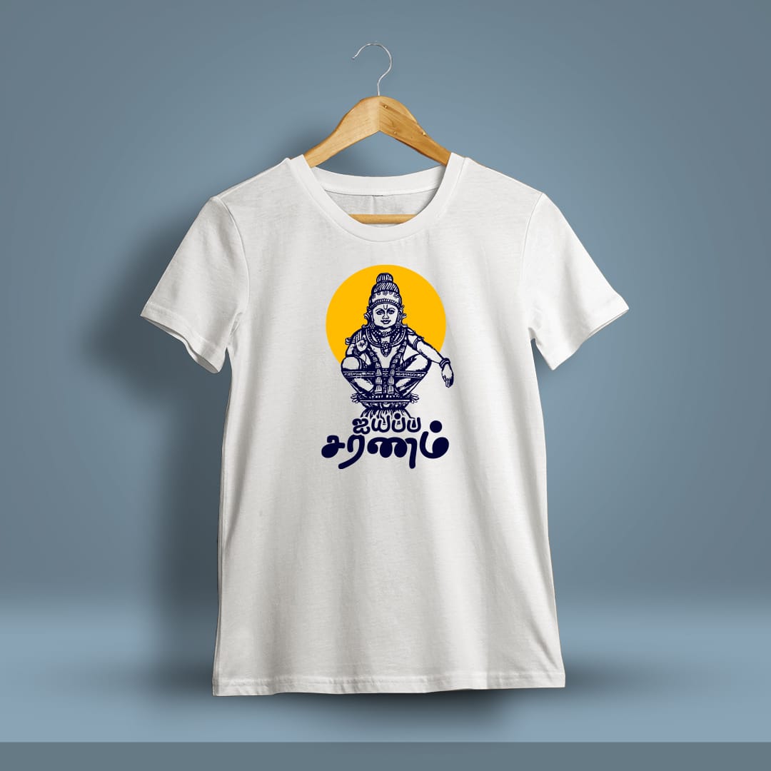 Ayyappa Saranam God Ayyappan T-Shirt features the sacred chant “Saranam Ayyappa,” offering comfort and style, perfect for expressing devotion in everyday wear.