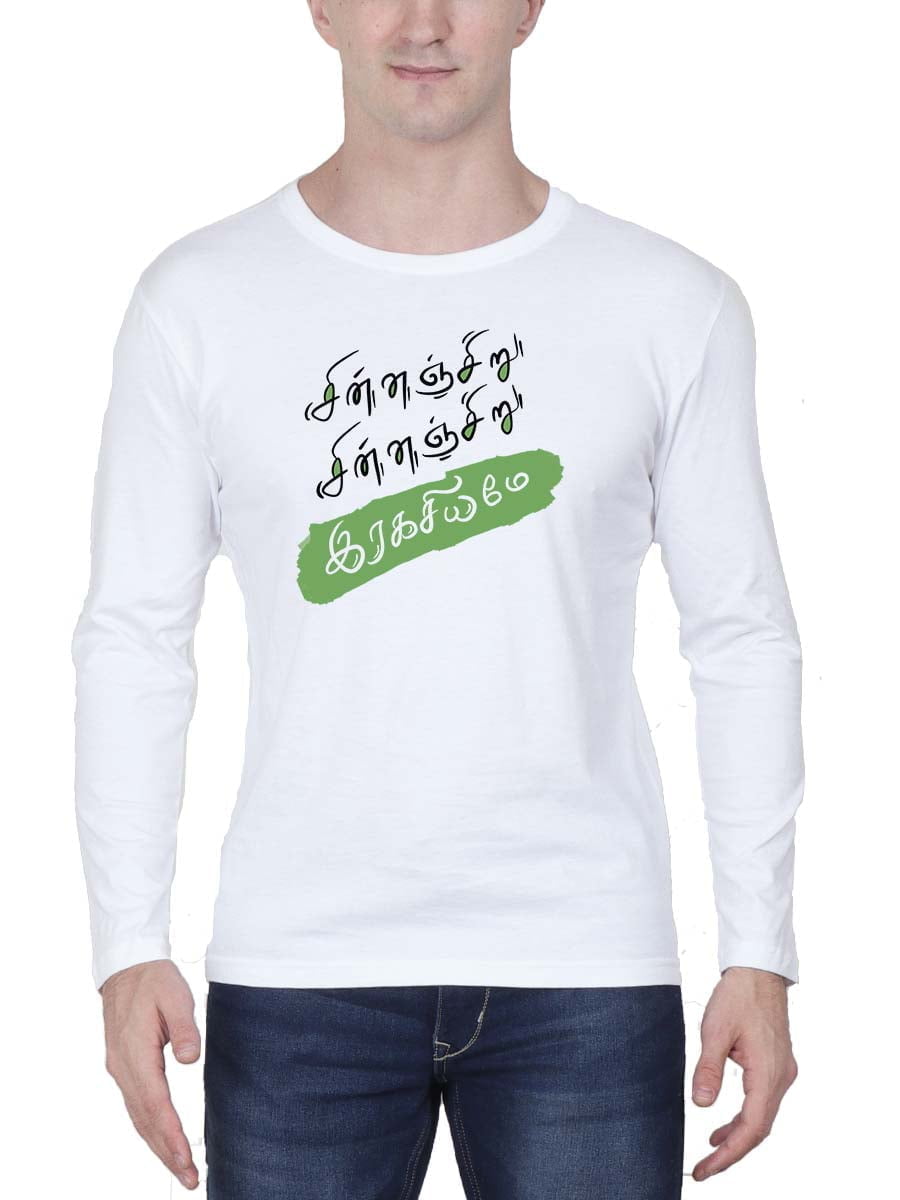 Cherish the little secrets with wearing Chinna Chiru Ragasiyame T-shirt. Shop now this Tamil Quotes as Men Full Sleeve.