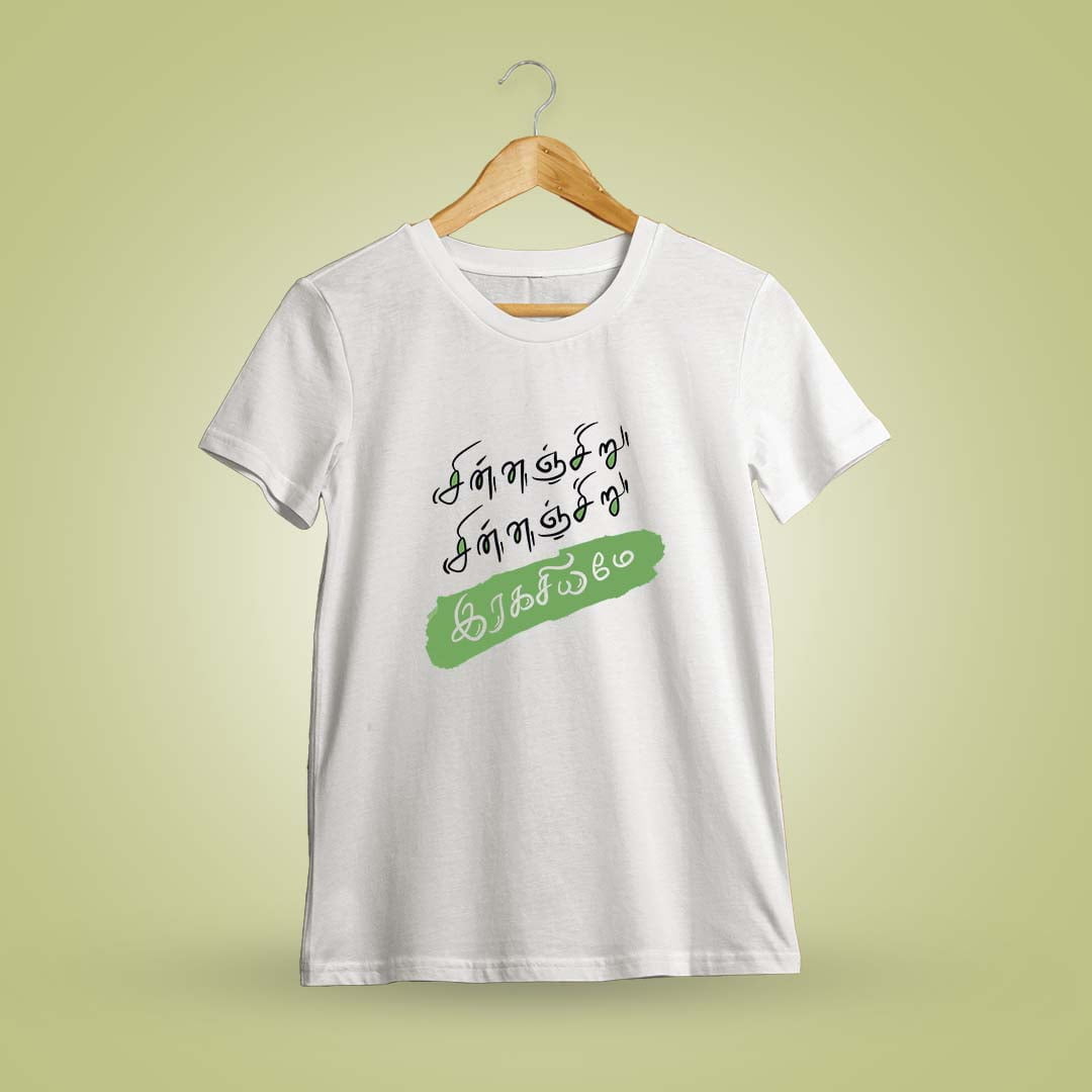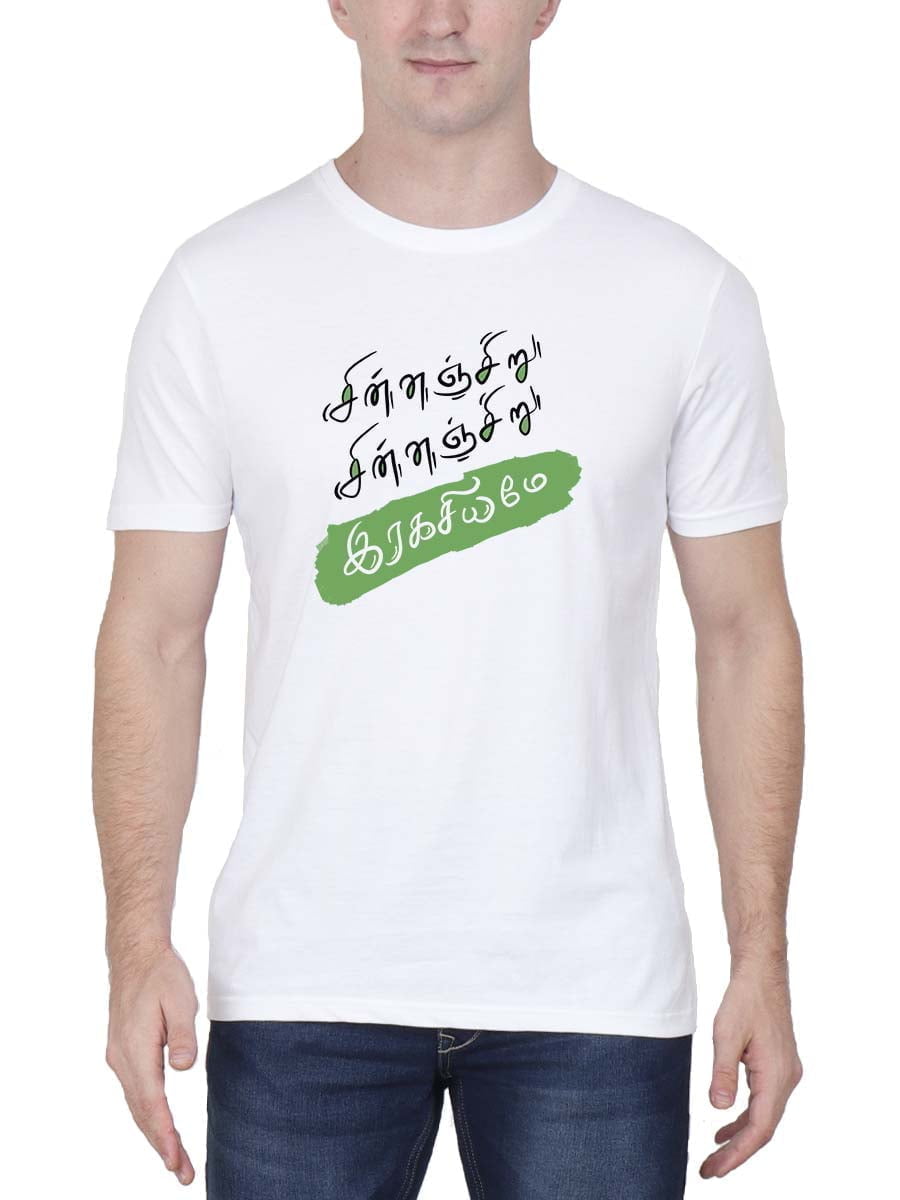 Cherish the little secrets with wearing Chinna Chiru Ragasiyame T-shirt. Shop now this Tamil Quotes as Men Half Sleeve.