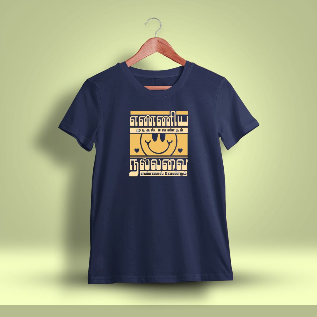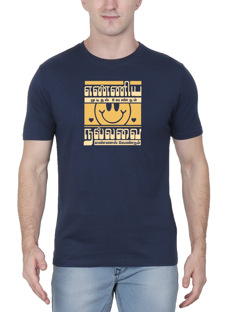 Enniya Mudithal Vendum Tamil T-Shirt inspires determination and perseverance with a bold Tamil quote, making it a must-have for those who believe in achieving their dreams.