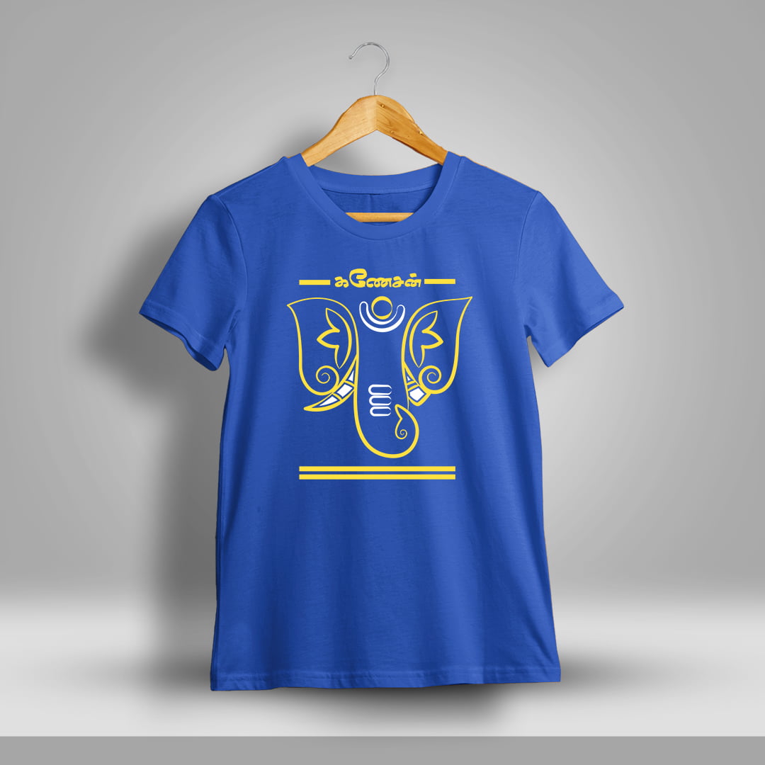 Ganesan Vinayagar T-Shirt for men with half sleeves, crafted from soft fabric. Features a stylish Vinayagar design, offering comfort and a spiritual, modern look.