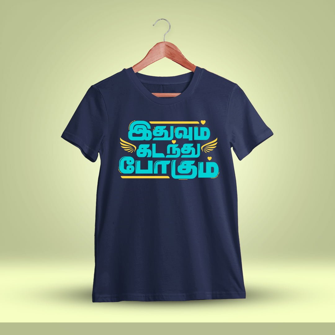 Wear resilience with our ‘Ithuvum Kadanthu Pogum’ Tamil quote as Men Half Sleeve T-shirt. Embrace change, overcome obstacles, and thrive.