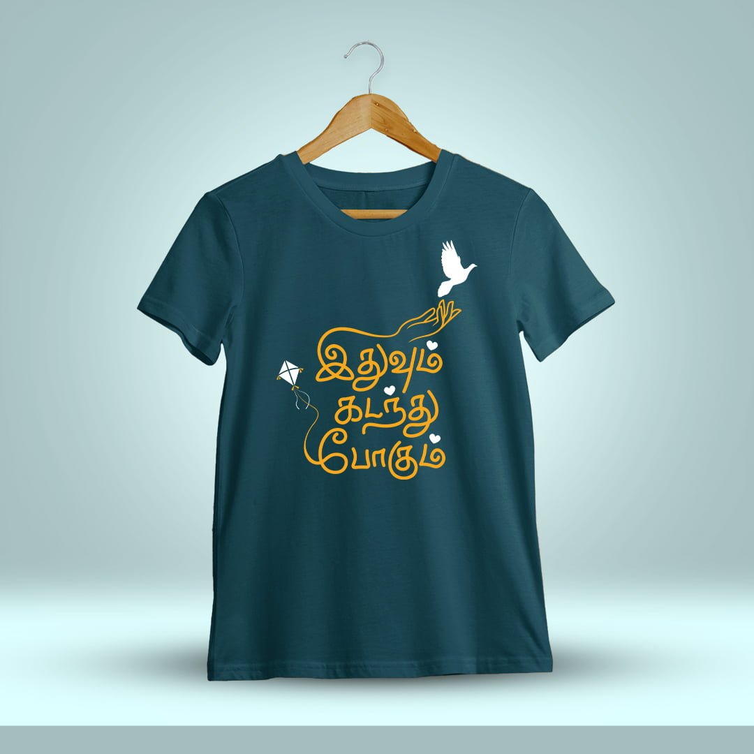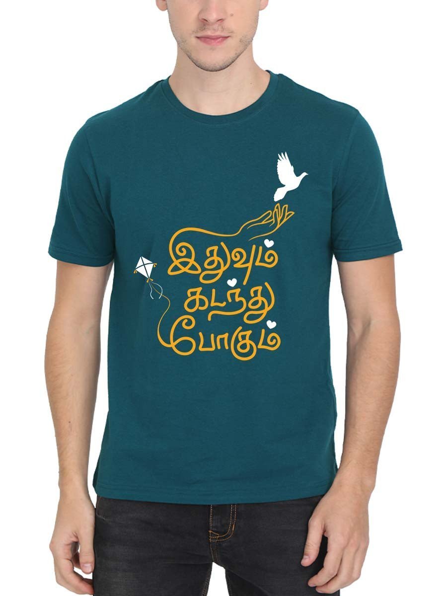 Wear resilience with our ‘Ithuvum Kadanthu Pogum’ Tamil quote as Men Half Sleeve T-shirt. Embrace change, overcome obstacles, and thrive.