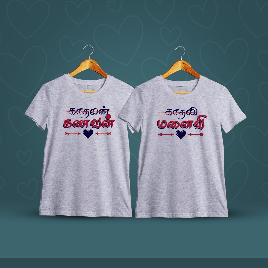 Kanavan Manaivi Tamil Couple T-Shirt celebrates the timeless bond of husband and wife with a stylish design. Comfortable and perfect for couples to showcase their love.
