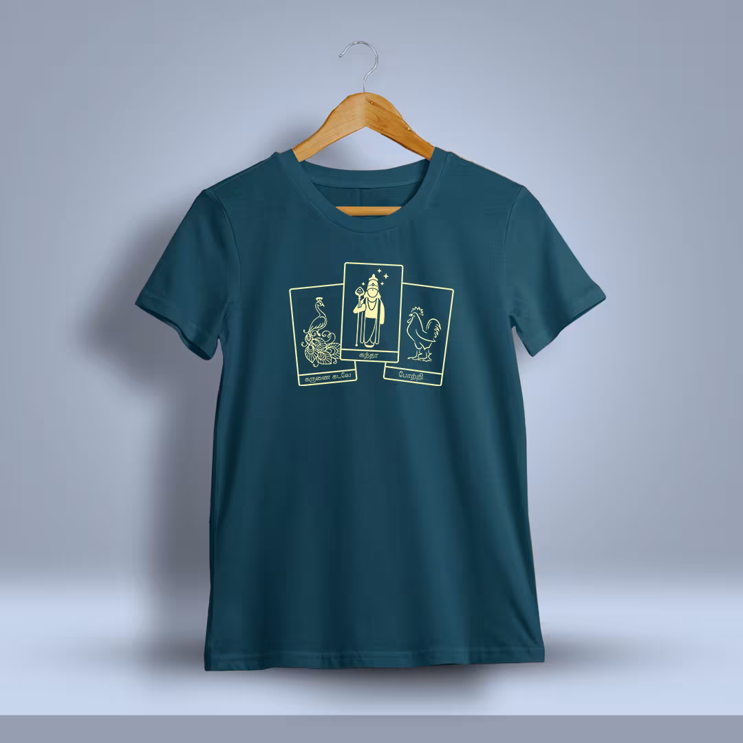 Karunai Kadale Kantha Potri God Murugan T-Shirt reflects devotion and divine blessings, featuring a powerful design honoring Lord Murugan?s infinite grace and kindness.