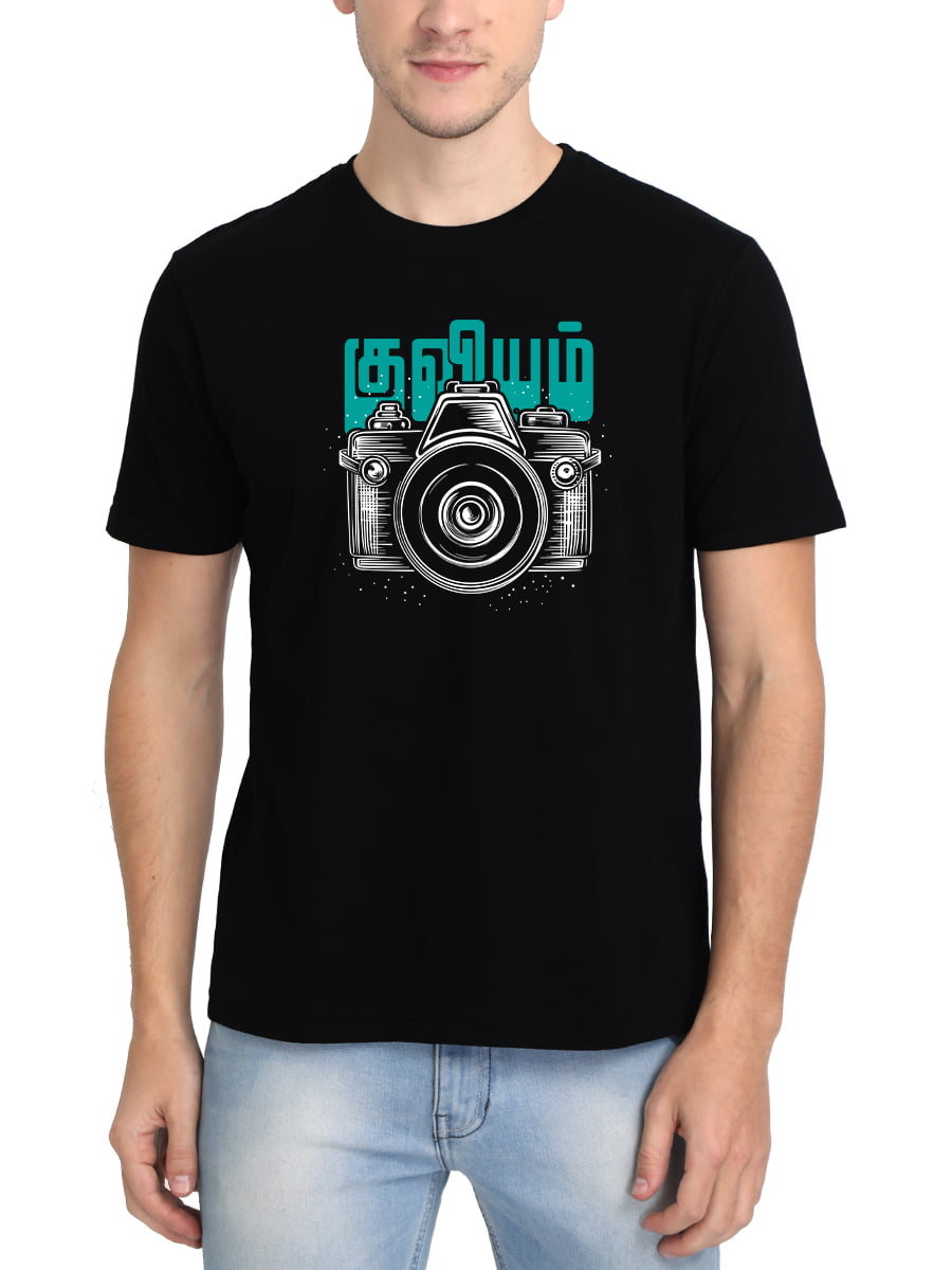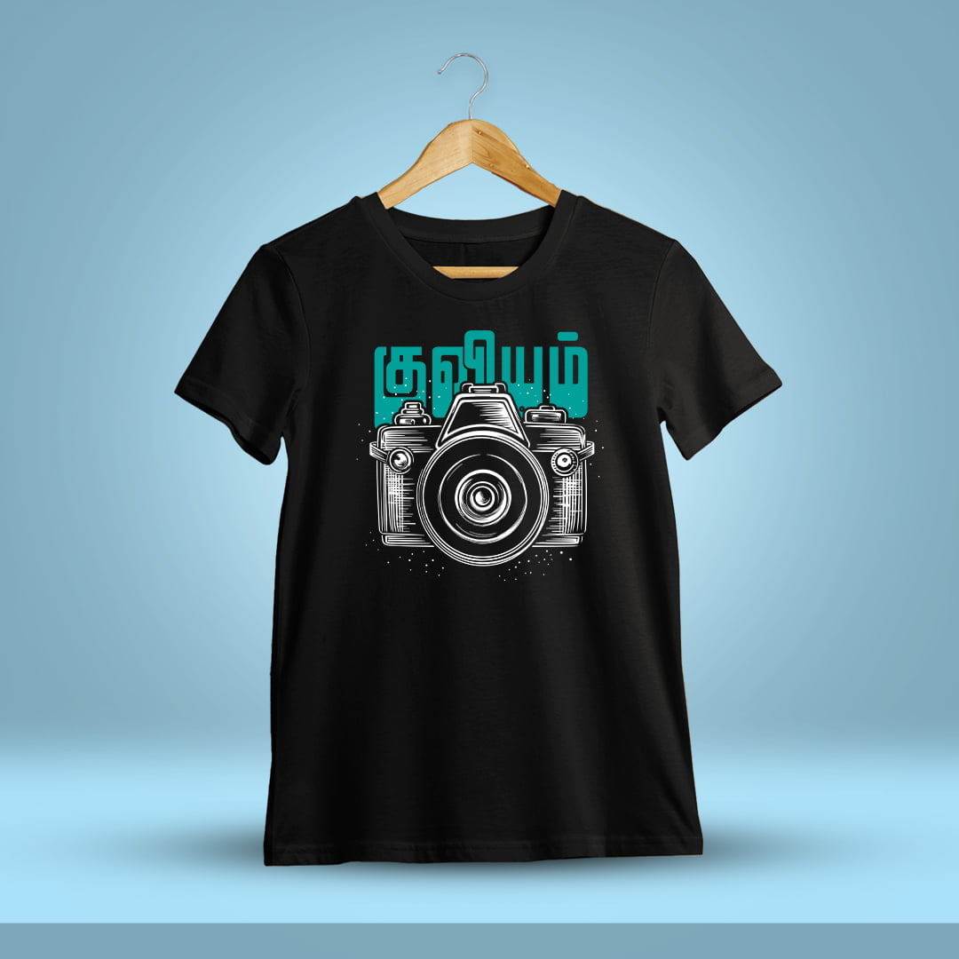 Kuviyam Tamil T-Shirt celebrates photography with a stylish Tamil script design. Perfect for camera enthusiasts who love capturing moments and showcasing Tamil culture.