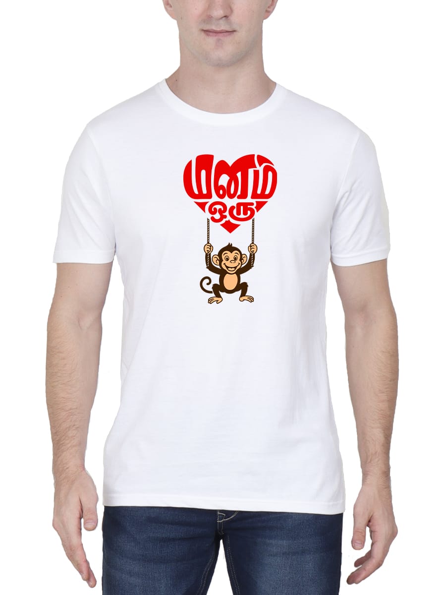 Boldly express emotions with this ‘Manam Oru Kurangu’ T-shirt. A blend of humor and identity, designed for the expressive Tamil soul.