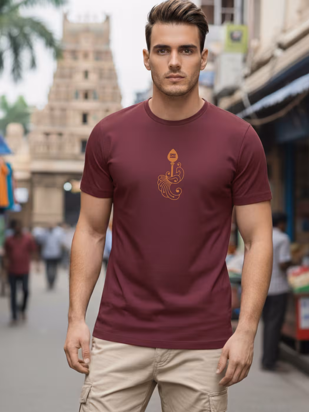Minimal Vel Mayil T-Shirt offers subtle elegance. Premium cotton, half sleeve comfort, blending minimalism with deep Tamil symbolism for stylish, everyday cultural pride.