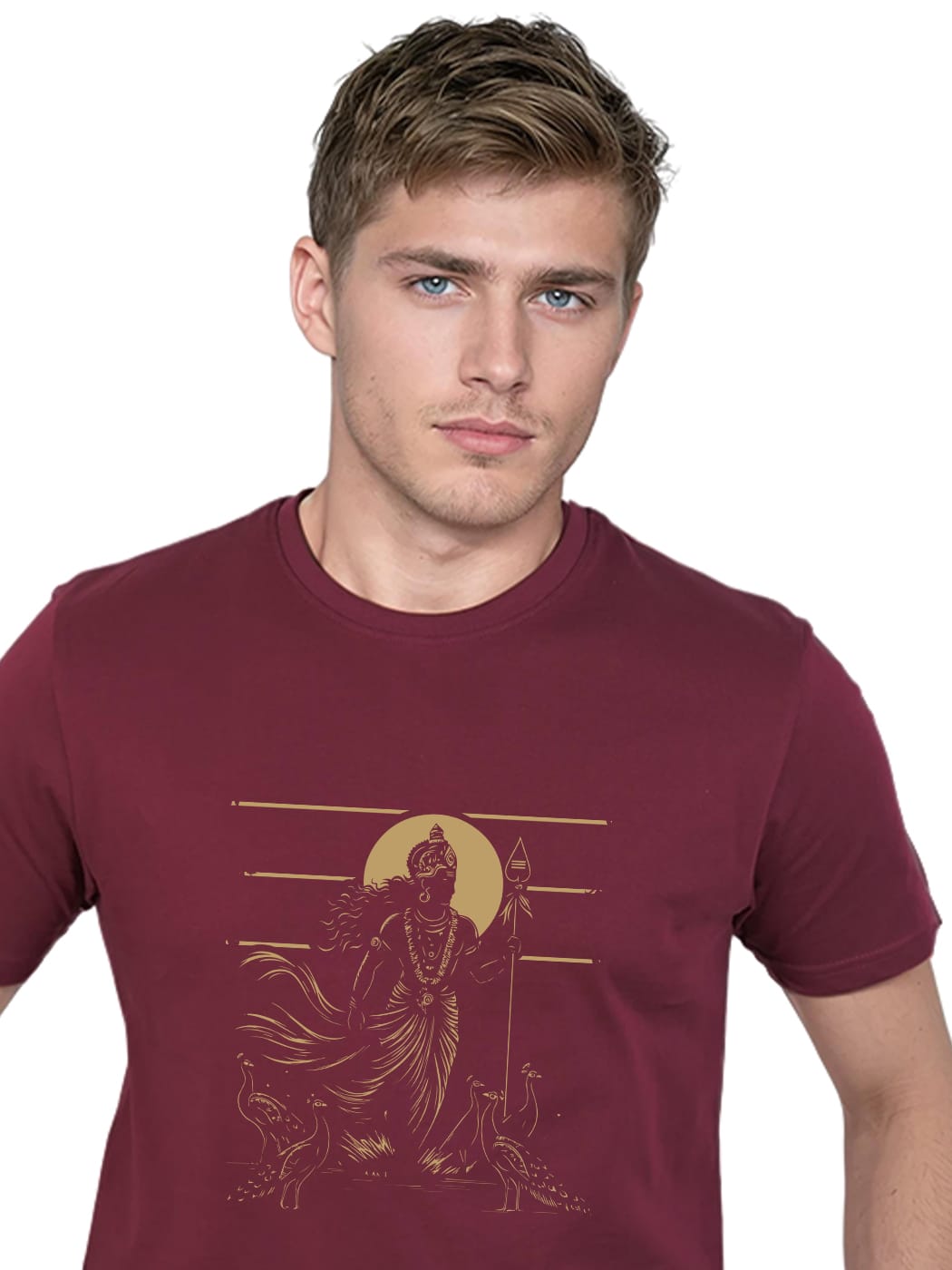 Stylish and meaningful Murugan Minimal T-Shirt For Men – Half Sleeve featuring sacred Tamil symbolism, perfect for expressing devotion and cultural pride in a comfortable half sleeve design.