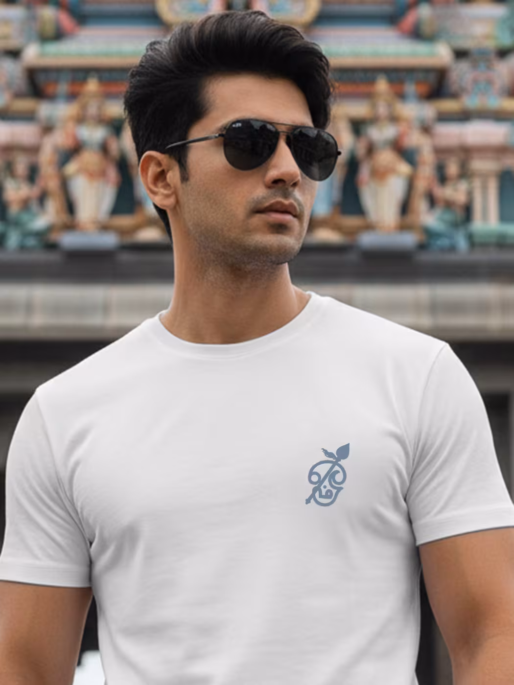 Minimal Om tee crafted for men, reflecting spirituality and Tamil simplicity. A half-sleeve design that fuses devotion, elegance, and cultural identity effortlessly for daily wear.