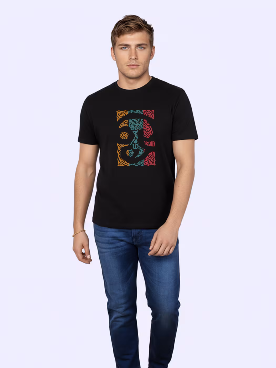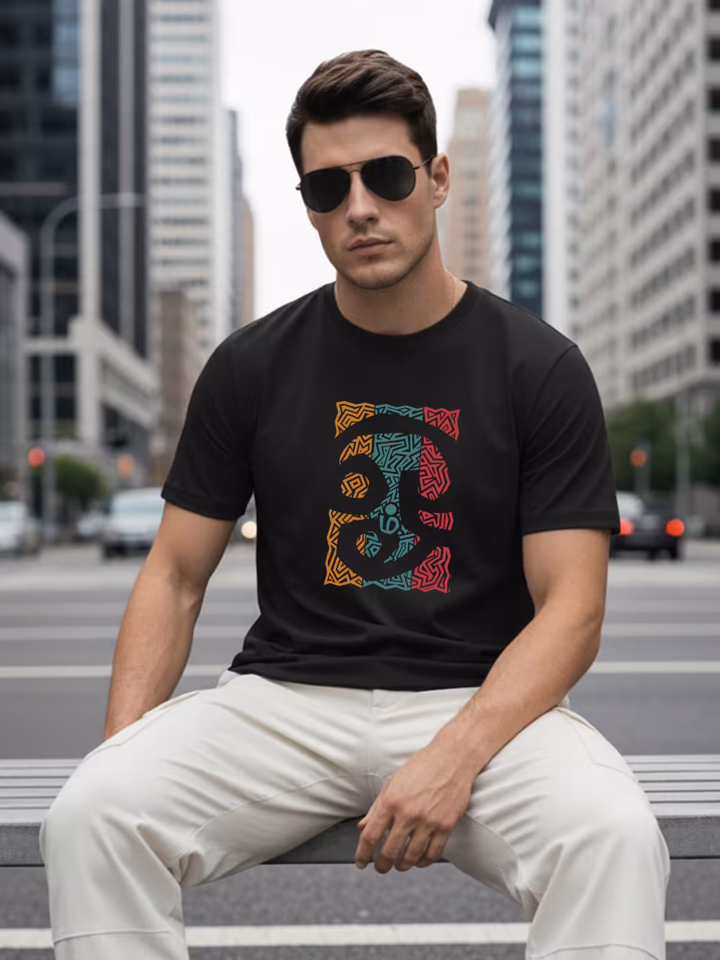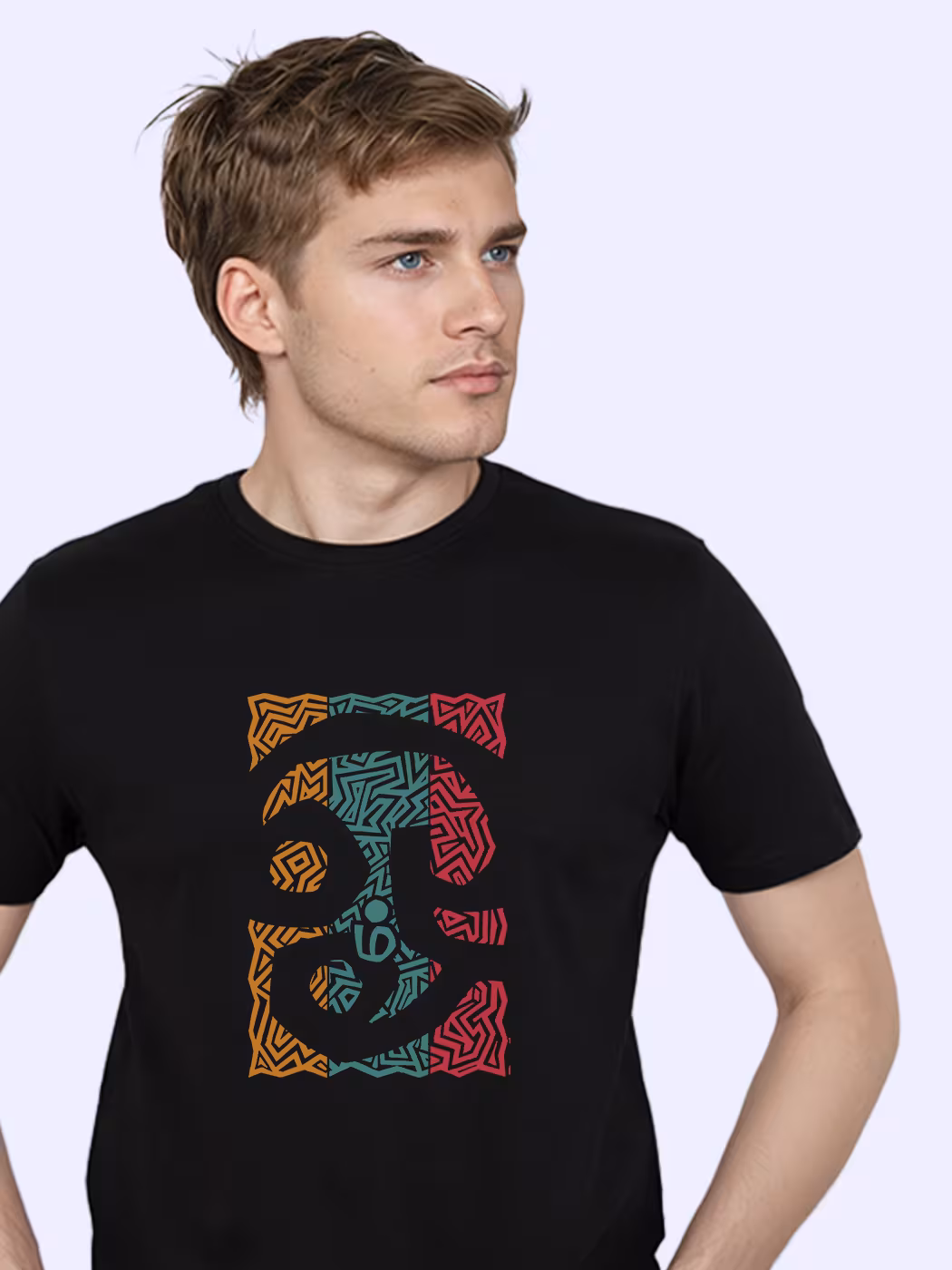 Om T-Shirt reflects spiritual calm and strength. Cotton, half sleeve, versatile for casual wear, meditation, or gifting as a cultural and spiritual symbol.