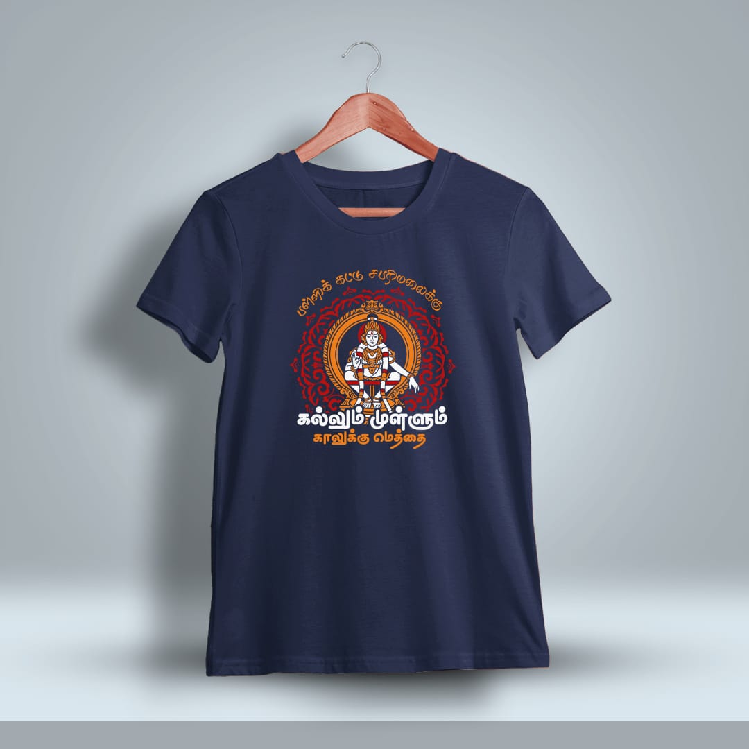Pallikattu Sabarimalaikku God Ayyappan T-Shirt honors the sacred journey to Sabarimala with a bold design. Comfortable and stylish, ideal for devotees on any occasion.
