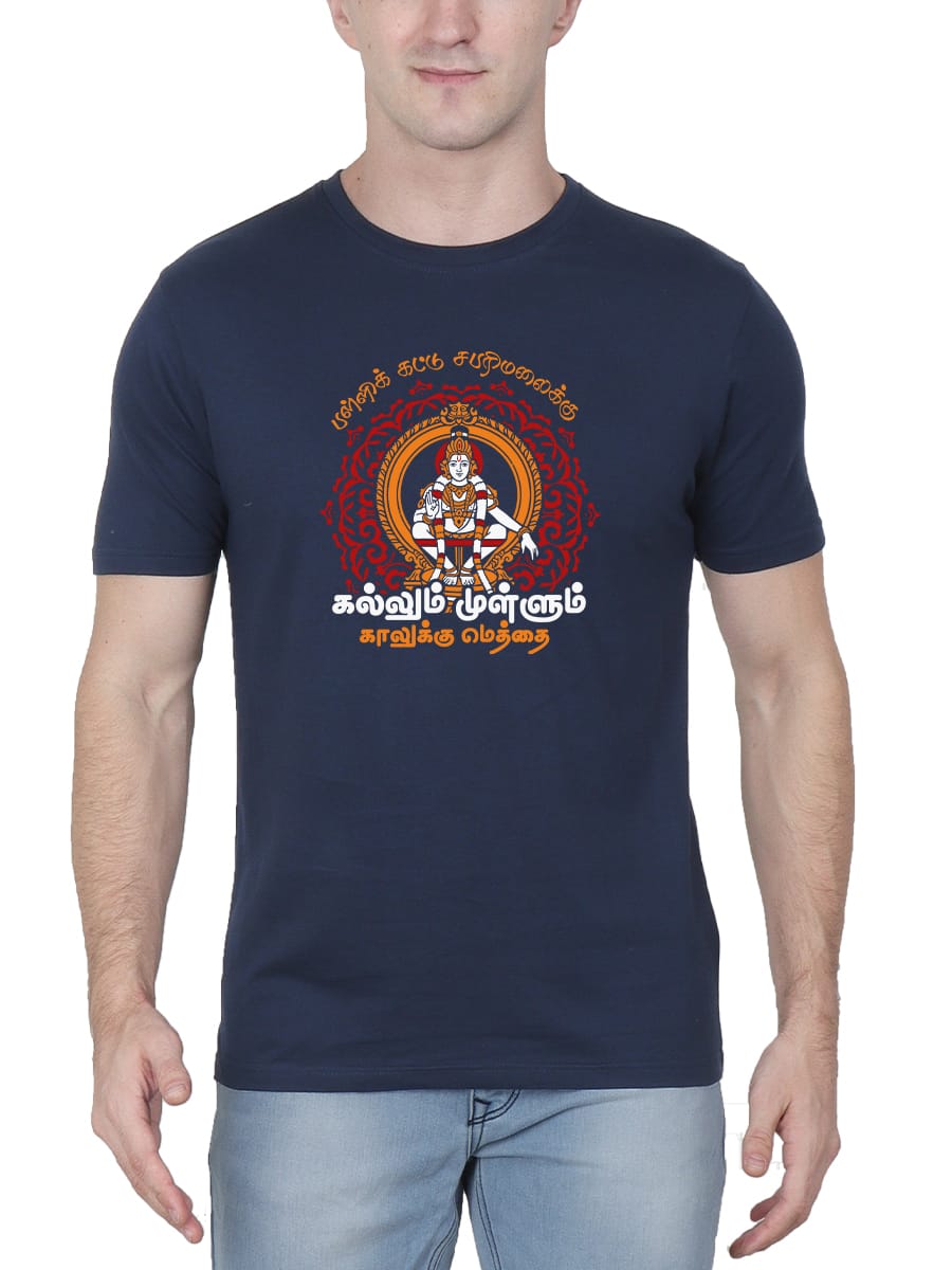 Pallikattu Sabarimalaikku God Ayyappan T-Shirt Navy Blue For Men - Half Sleeve quantity