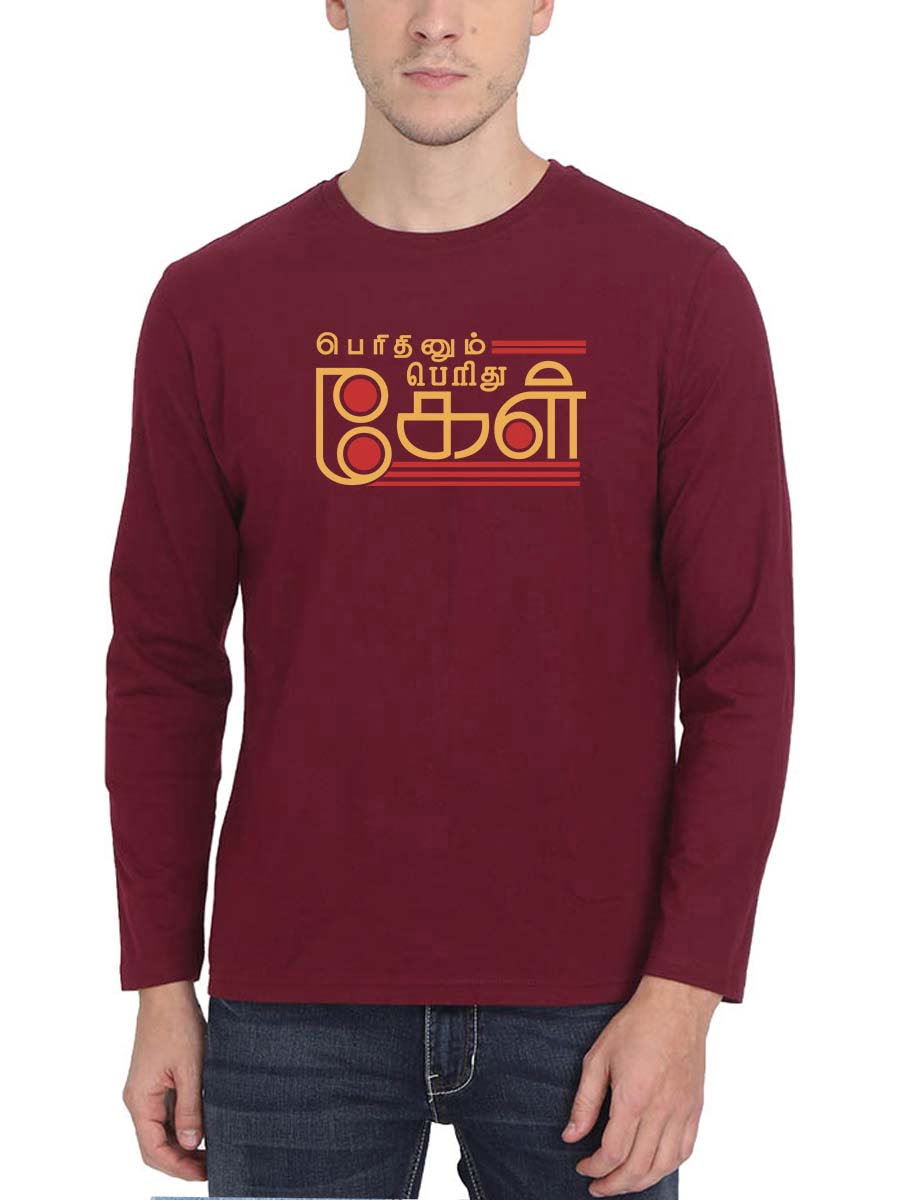 Empower yourself with our ‘Perithinum Perithu Kel’ Tamil Bharathiyar quote as Men Full Sleeve T-shirt. Rise above, persevere, and thrive.
