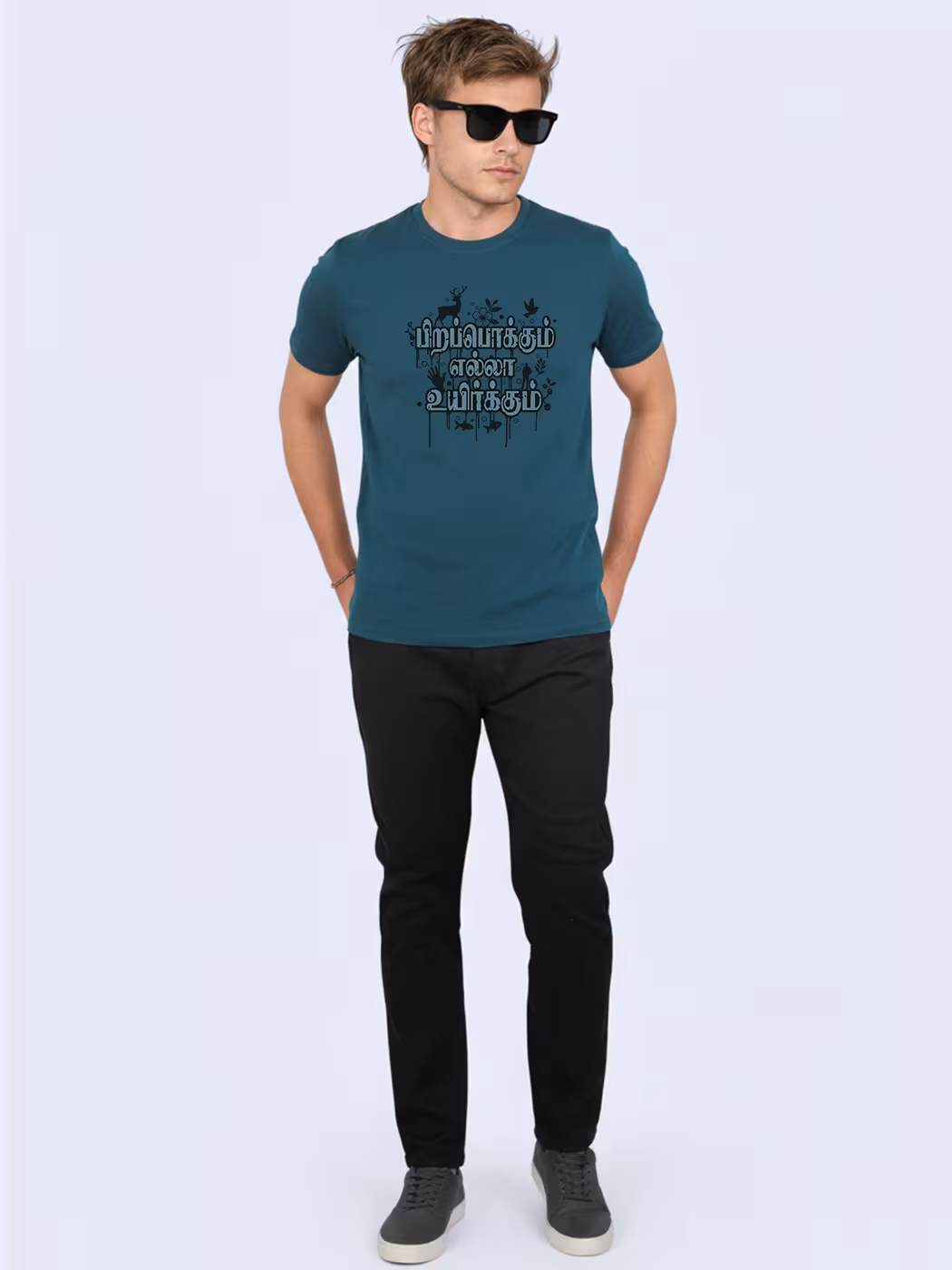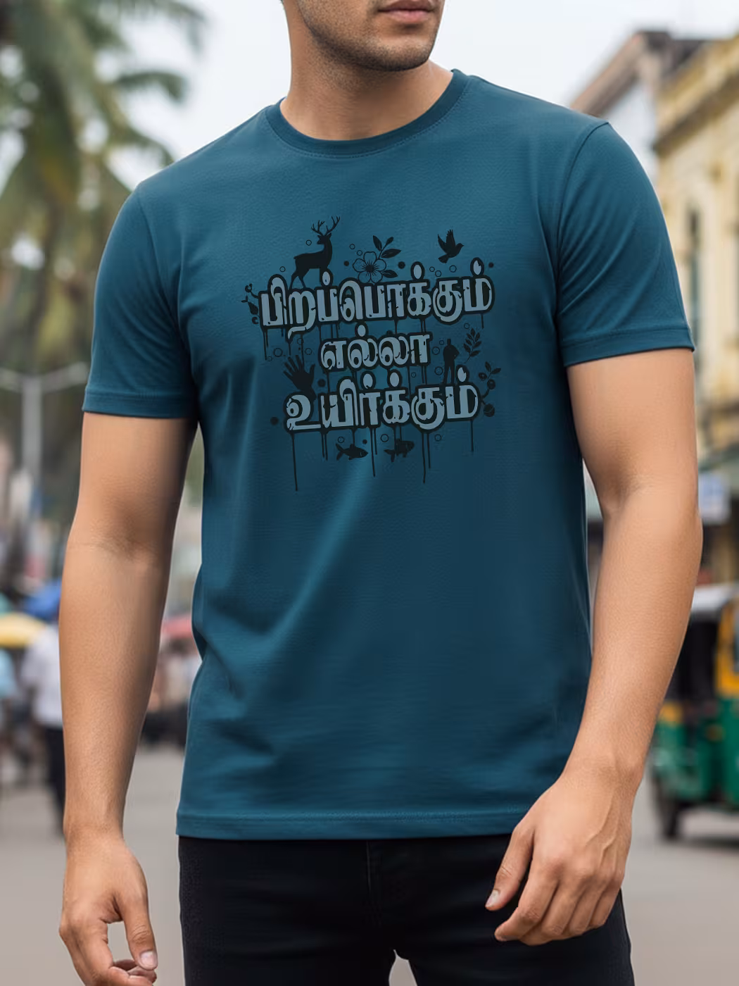 Express unity with Pirapokkum Ella Uyirkum tee, designed for men who value equality and Tamil heritage, in a bold half-sleeve style that inspires cultural pride.