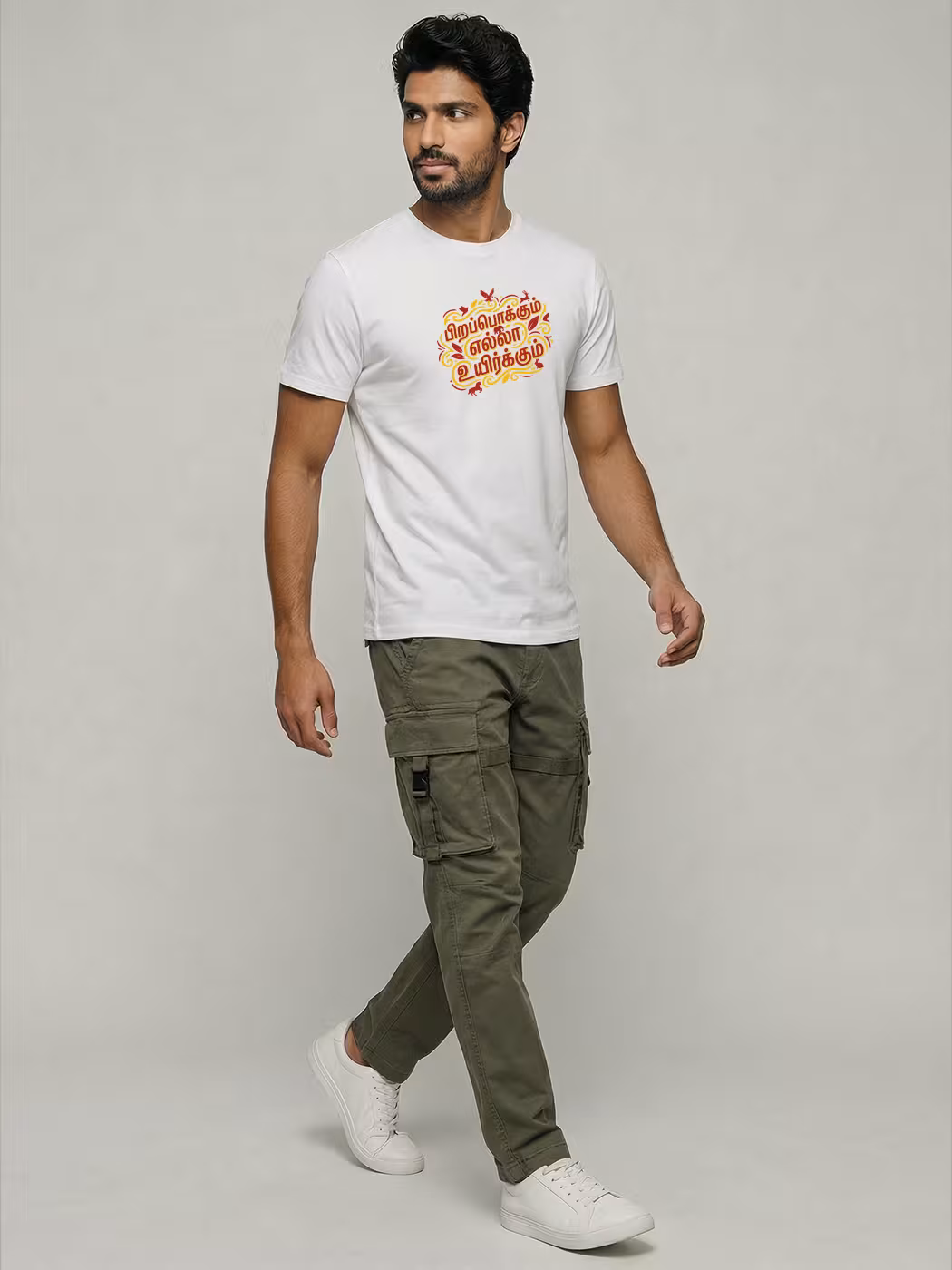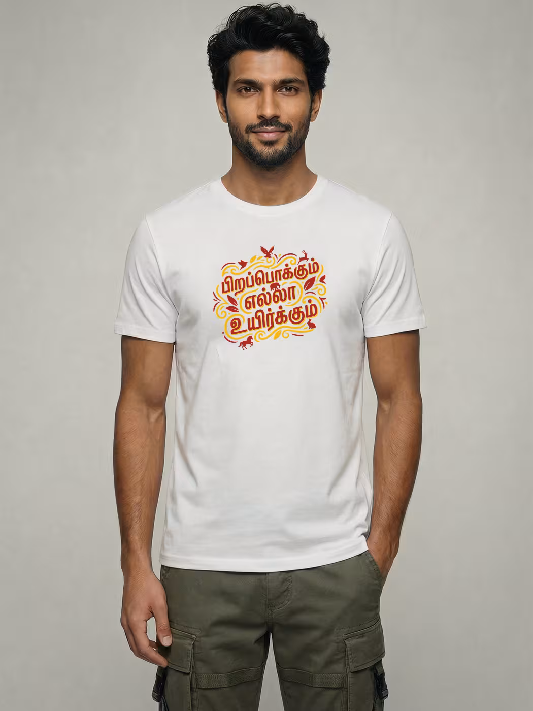Celebrate equality with this Pirappokkum Ella Uyirkkum T-shirt. Comfortable cotton fabric, modern fit, and meaningful Tamil quote make it perfect for everyday wear.