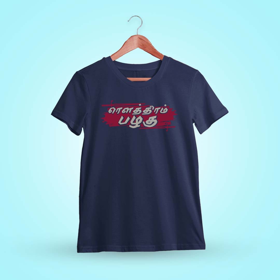Rowthiram Pazhagu Navy Blue T-Shirt: Channel the fervor of Bharathiyar’s Tamil spirit in this bold attire.