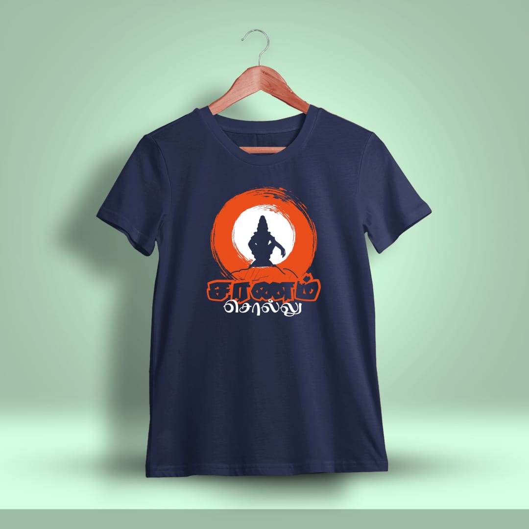 Saranam Sollu God Ayyappan T-Shirt features a bold design with the devotional phrase “Saranam Sollu.” Comfortable and stylish, perfect for expressing faith and devotion.