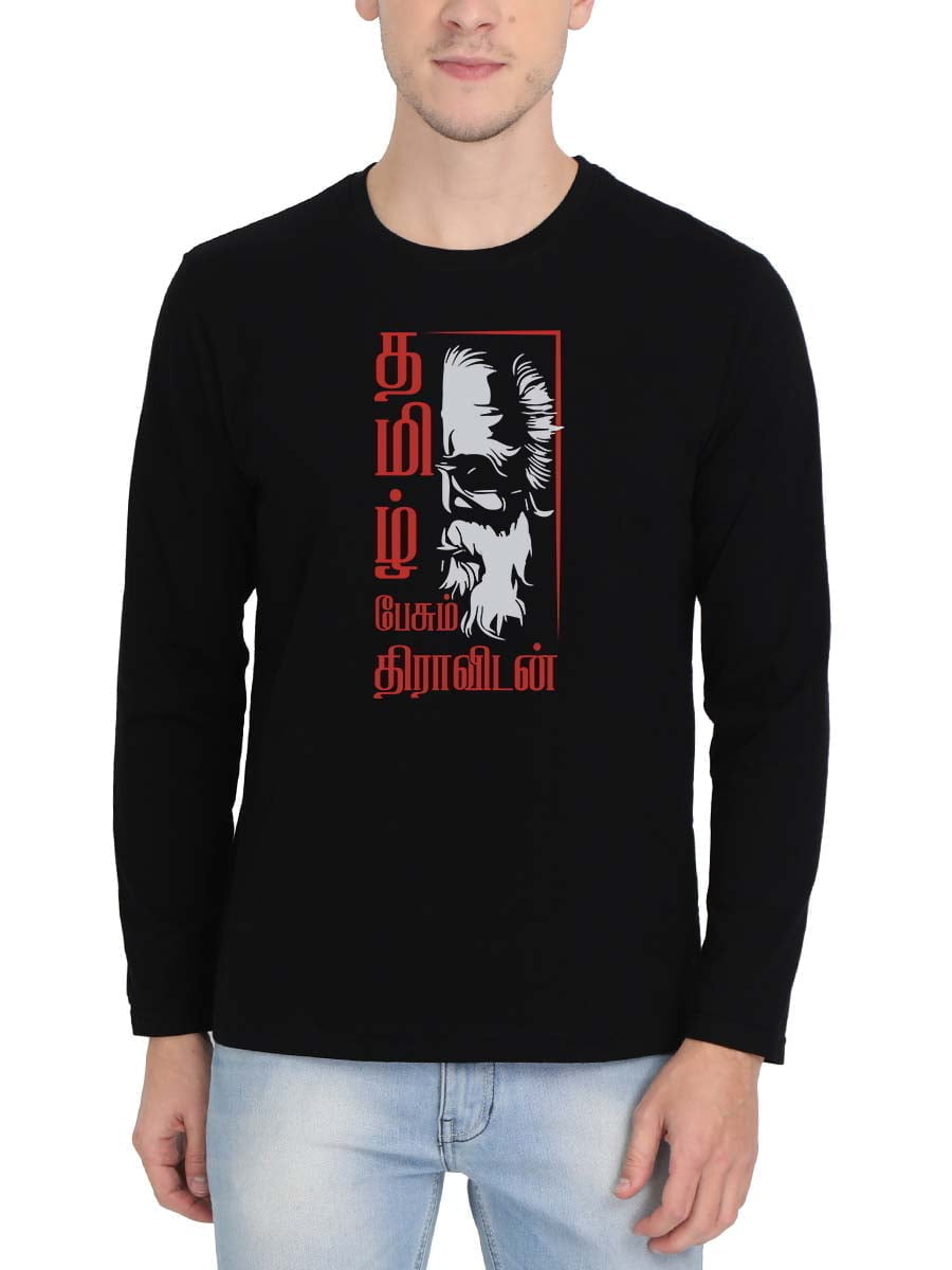 Tamil Pesum Dravidan Men full sleeve T-shirt: Boldly express your Dravidian identity with pride in this culturally-rich garment.