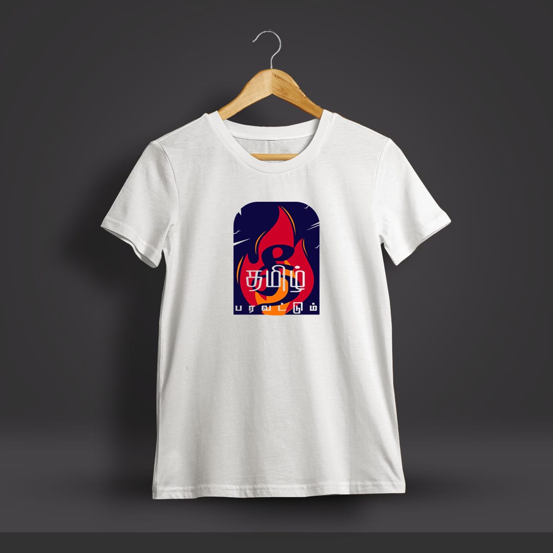 Tamil Thee Paravattum Printed T-Shirt is a fiery tribute to Tamil pride, symbolizing the unbreakable spirit of the language and its passionate speakers.