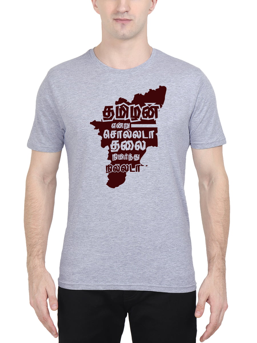Tamilan Endru Sollada Bharathiyar T-Shirt for Men features a half-sleeve design with inspiring Bharathiyar quote, offering comfort and a bold expression of Tamil identity.