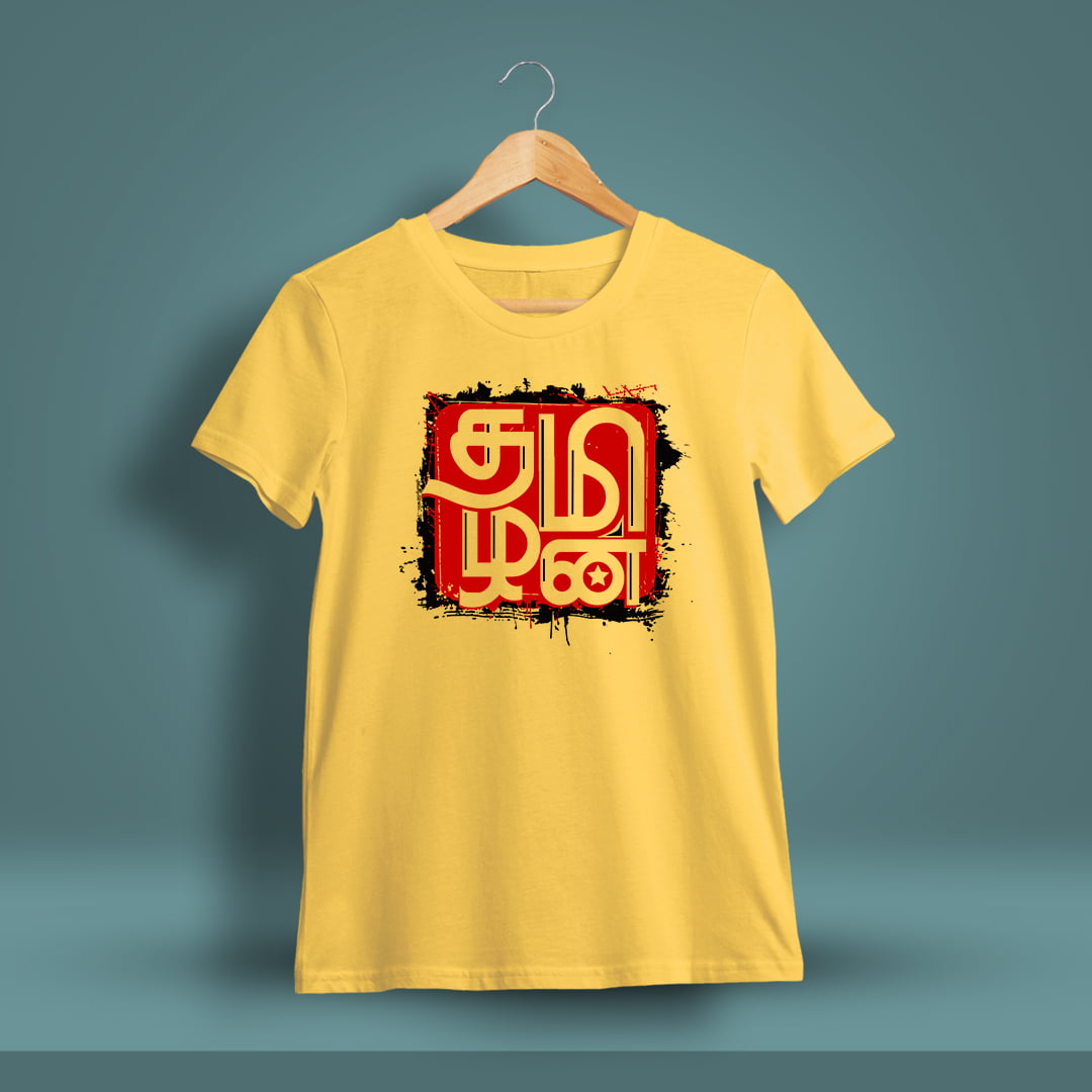 Tamilan Tamil T-Shirt for men with half sleeves offers a blend of comfort and pride, featuring bold Tamil script that celebrates Tamil identity and culture with style.
