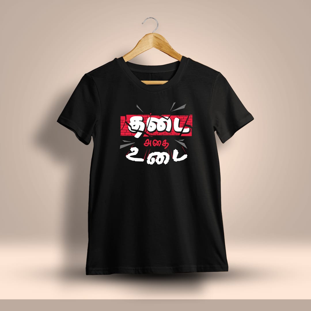 Break barriers with the Thadai Athai Udai Tamil T-Shirt. Designed for comfort and style, it symbolizes resilience and Tamil pride, inspiring confidence wherever you go.