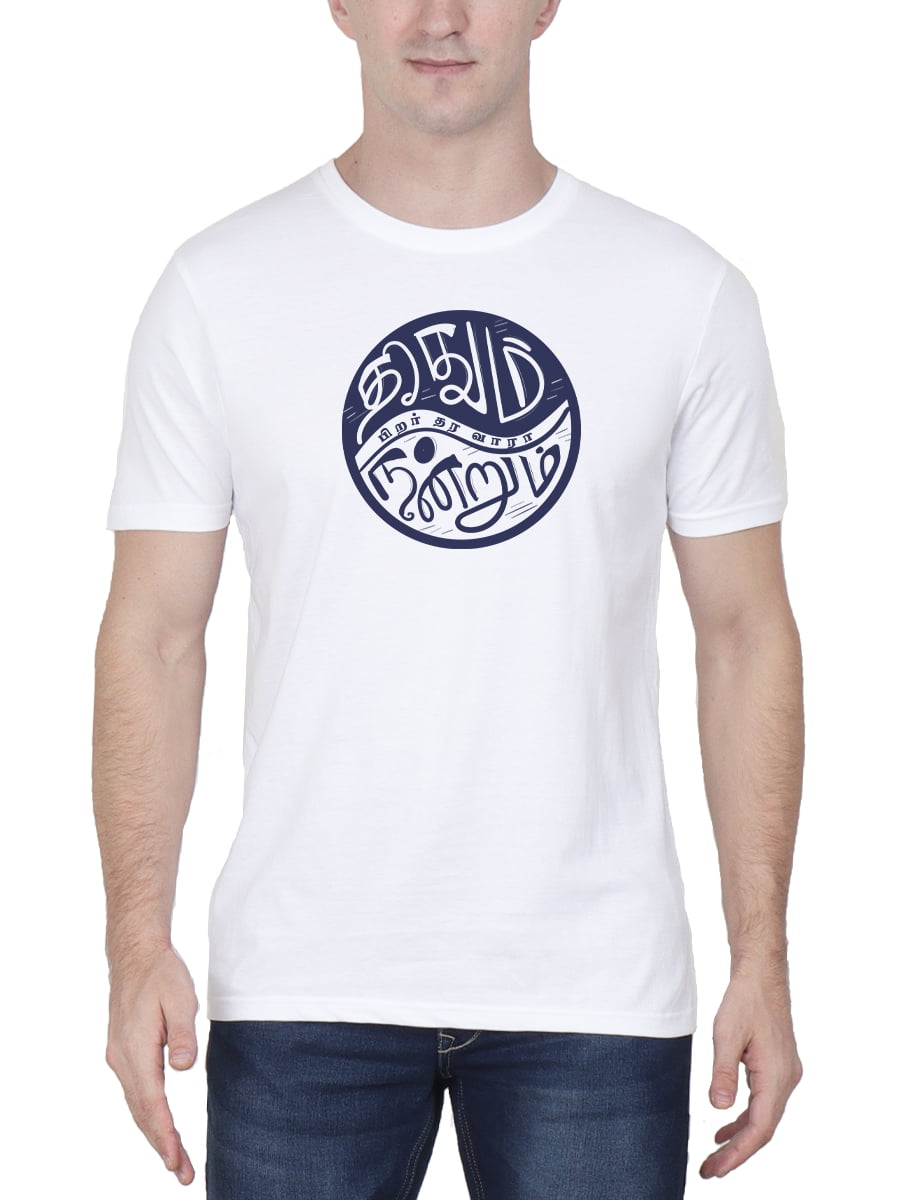 Theethum Nandrum Pirar Thara Vara Tamil T-Shirt for men with half sleeves features a powerful Tamil quote, offering comfort and style while reflecting on fate and personal responsibility.