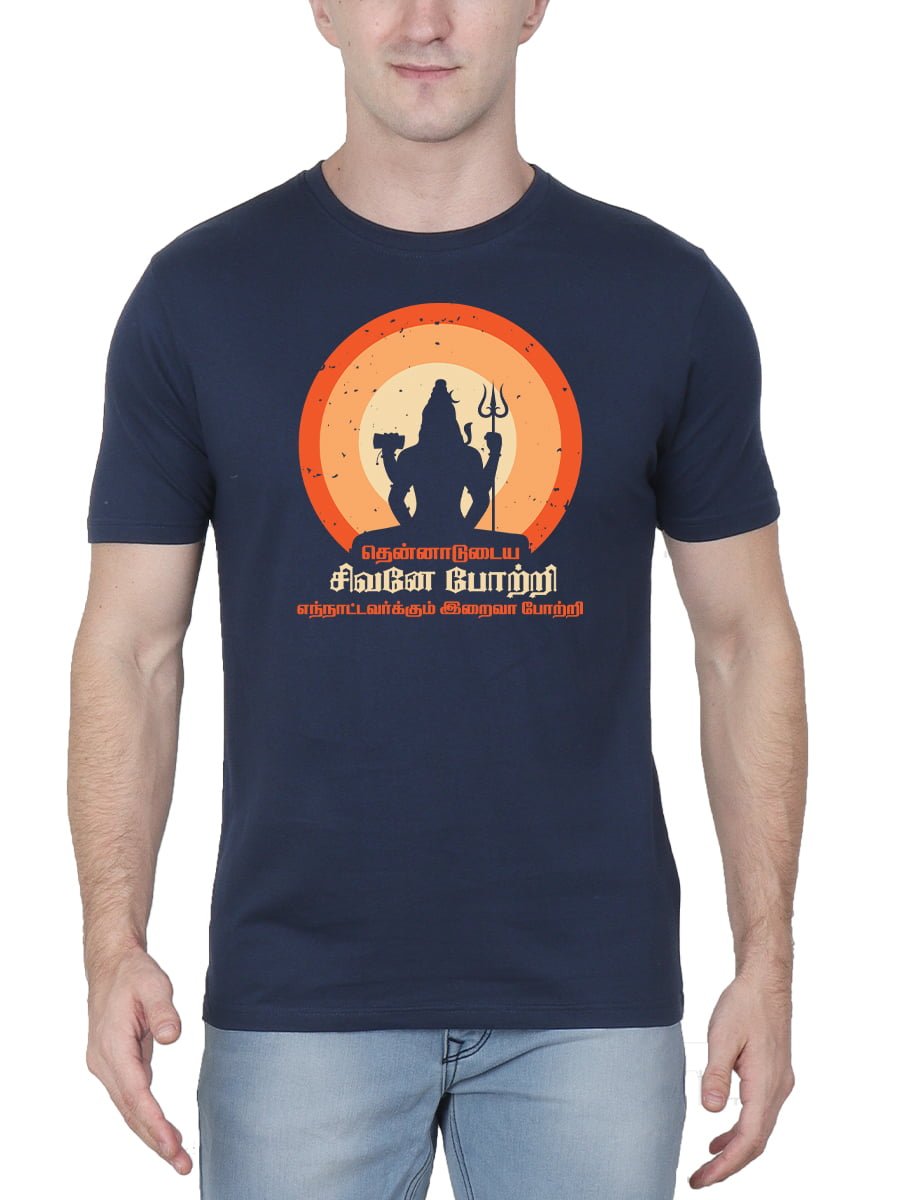 Thennadudaya Sivane Potri Sivan T-Shirt for men, half sleeve, made from soft fabric. Features a meaningful print of Sivane Potri, blending spiritual depth with casual comfort.