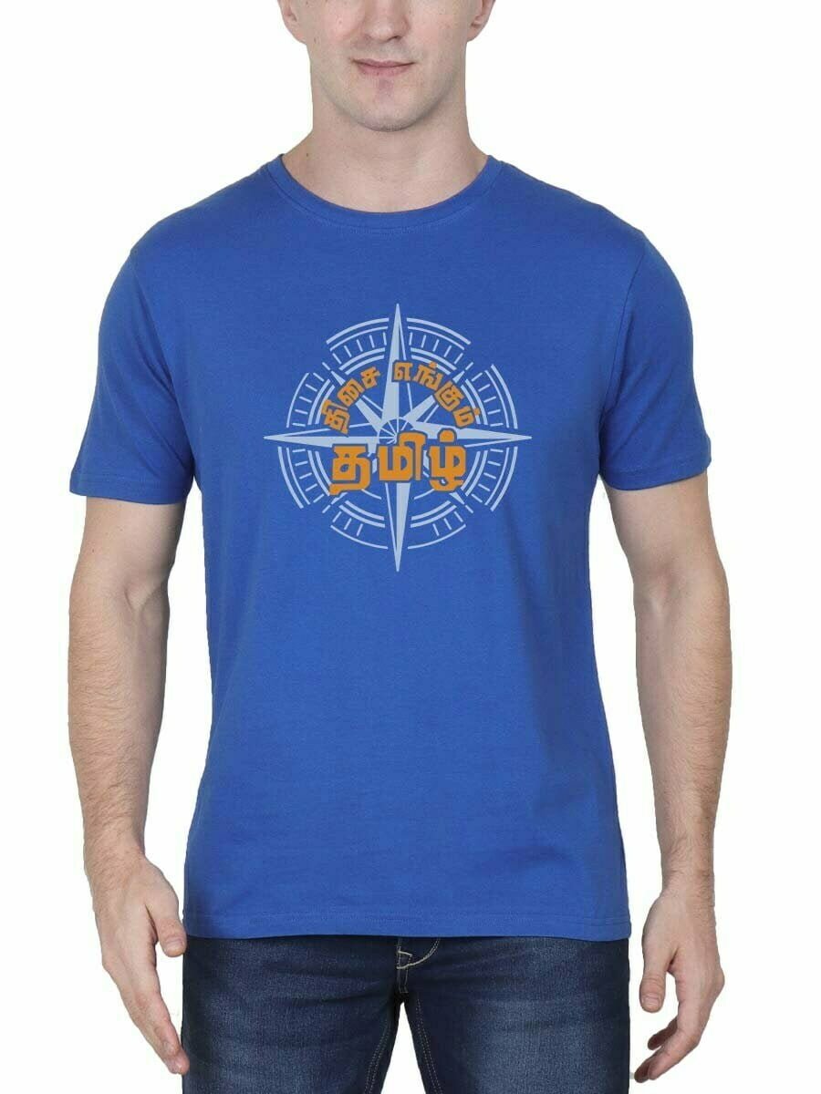 Elevate your style with our ‘Thisai Engum Tamil’ T-shirt as Men Half Sleeve. Celebrate Tamil culture in bold fashion. Shop now.