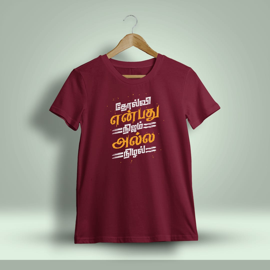 Tholvi Enbathu Nijam Alla Nizhal Tamil Printed T-Shirt redefines failure as a shadow, not reality, inspiring resilience and determination through Tamil wisdom.