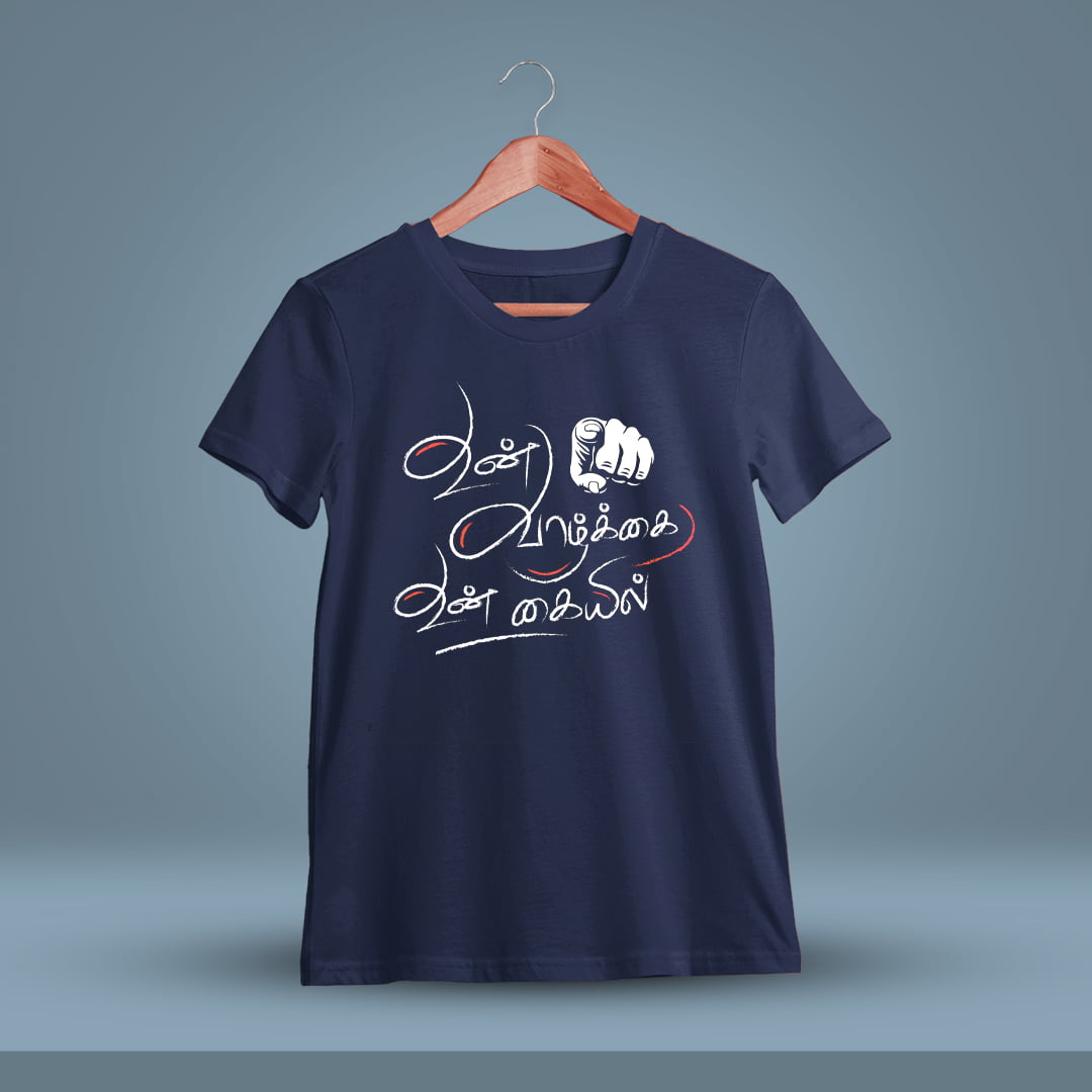 Embrace life’s journey with our ‘Un Vazhkai Un Kaiyil’ Men Half Sleeve T-shirt. Wear inspiration, embody resilience. Shop now!