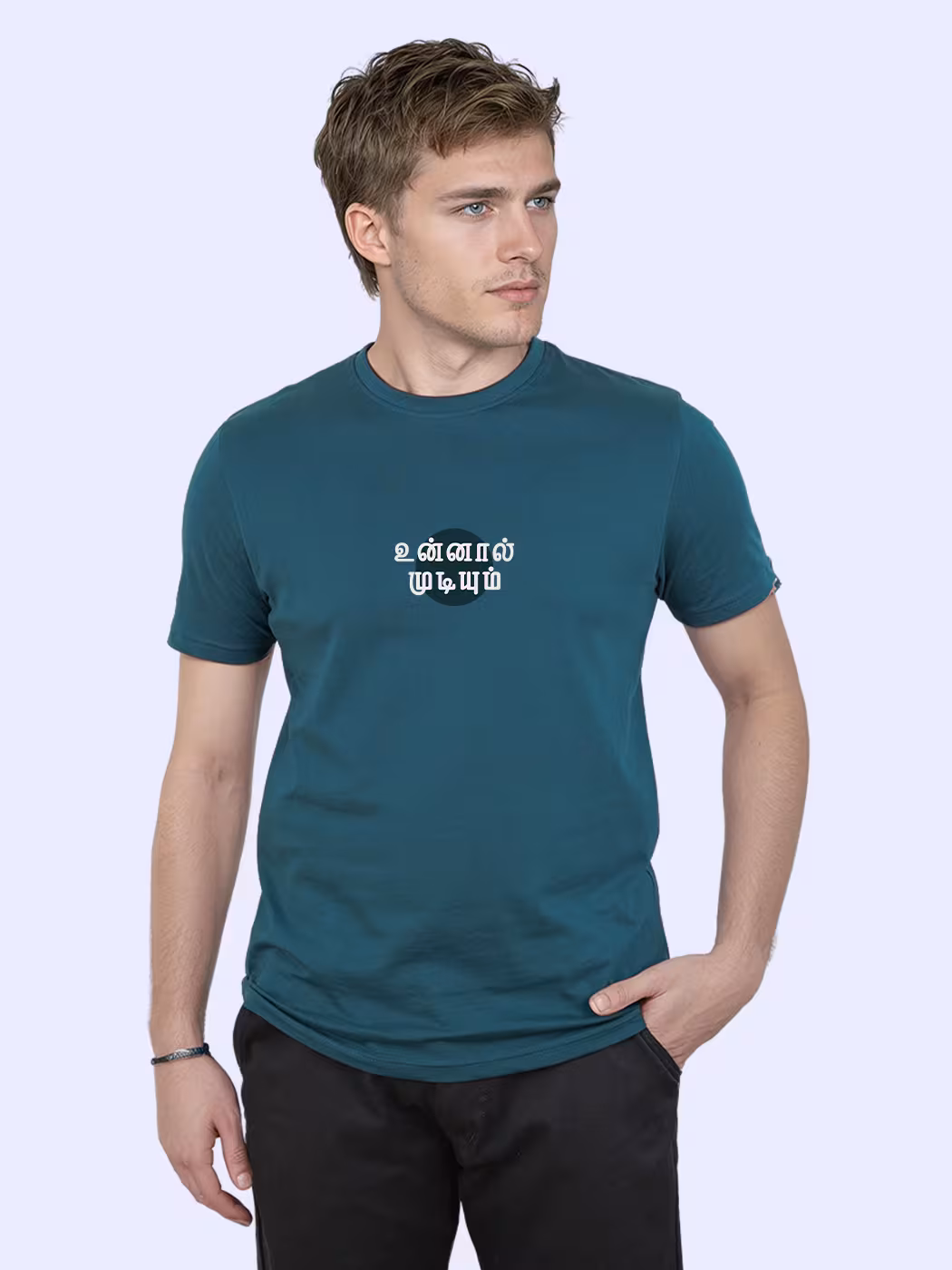 Unnaal Mudiyum T-Shirt motivates with timeless words. Cotton half sleeve design for men who believe in confidence, cultural strength, and daily inspiration.