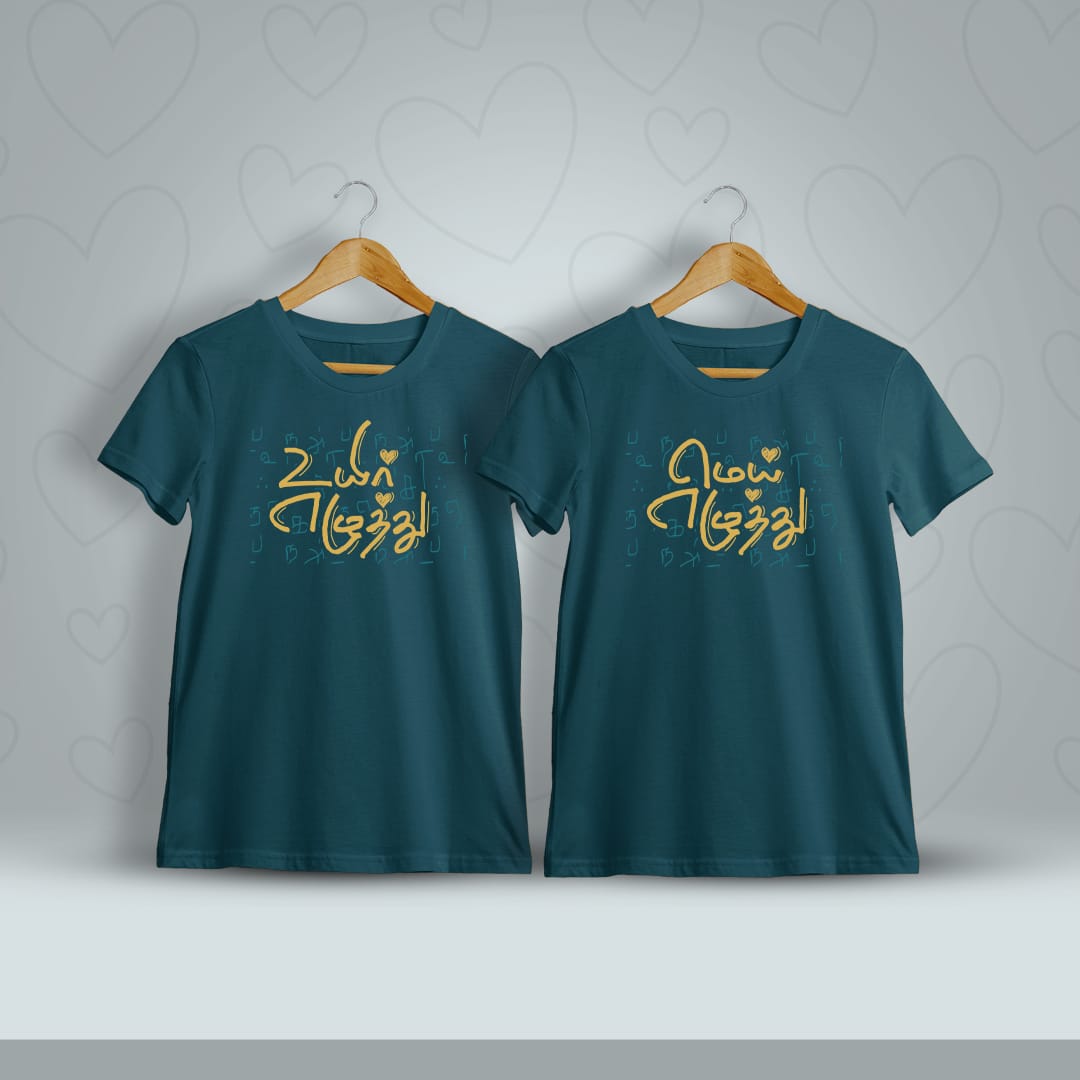 Uyir Ezhuthu Mei Ezhuthu Tamil Couple T-Shirt symbolizes deep connection, crafted for comfort and style. Perfect for couples who celebrate love and cultural roots.