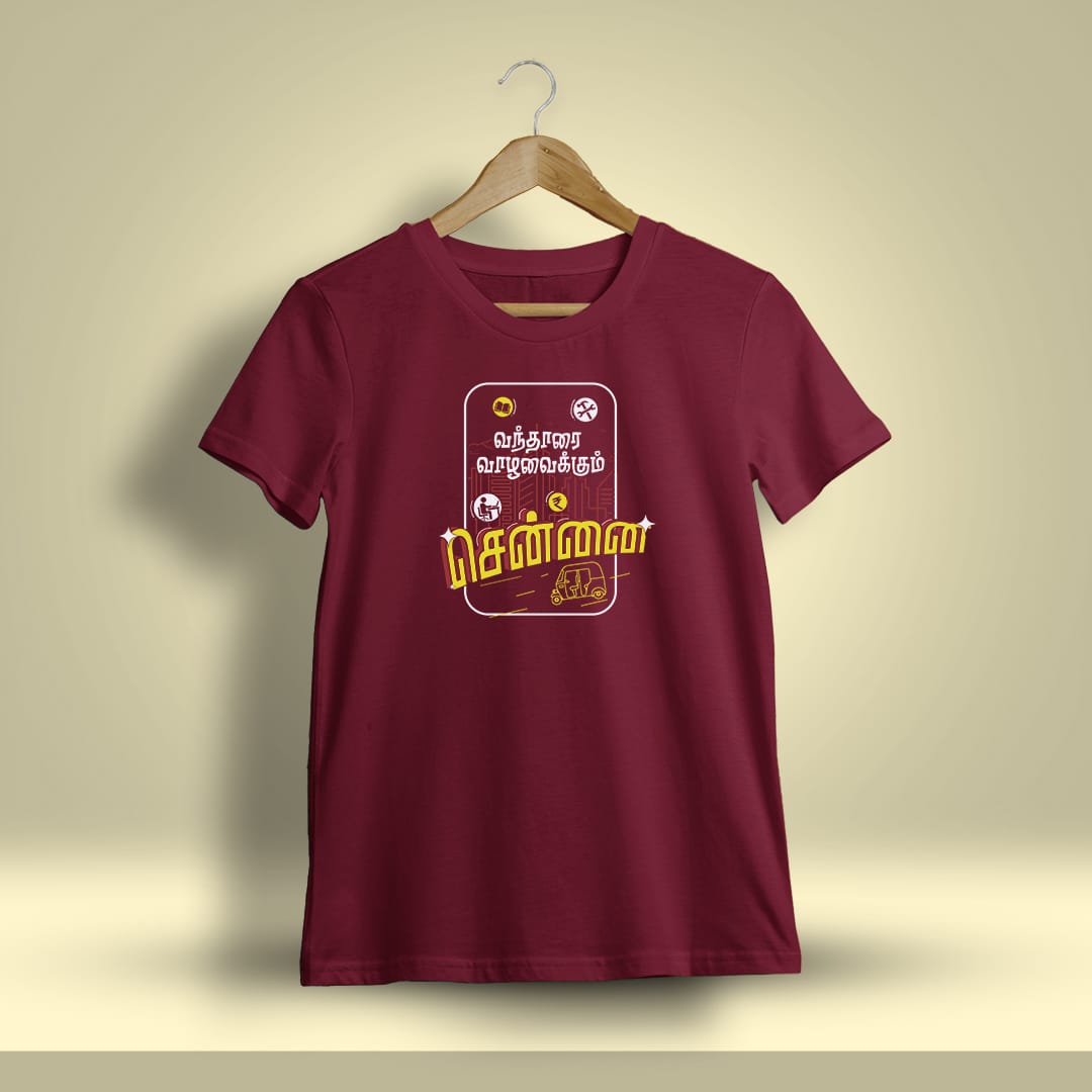 Vantharai Vazhavaikkum Chennai T-Shirt embraces the welcoming spirit of the city. Designed for comfort and style, it’s perfect for those who love Chennai’s warmth.