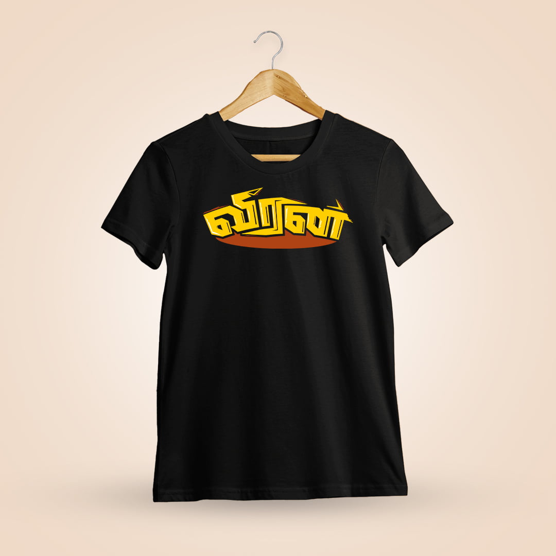 Veeran Tamil T-Shirt embodies bravery with a striking design. Celebrate the heroic spirit of Tamil culture and showcase your pride with this bold and empowering tee.