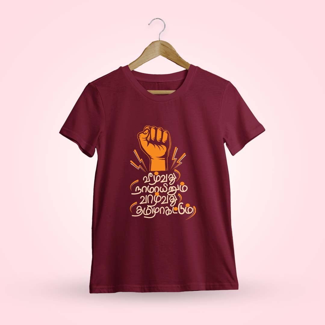 Veezhvathu Namayinum Valvathu Maroon Tamil Pride T-Shirt quantity