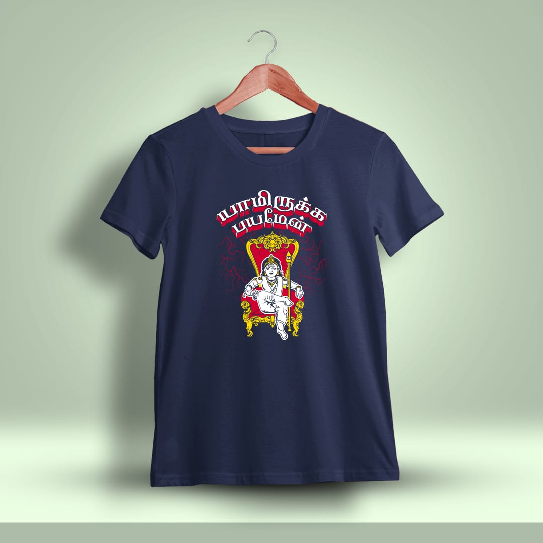 Yamirukka Bayamen God Murugan T-Shirt embodies faith with the empowering mantra, ensuring comfort and devotion in every wear.