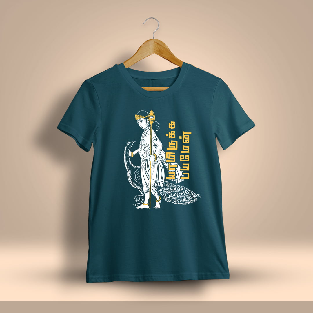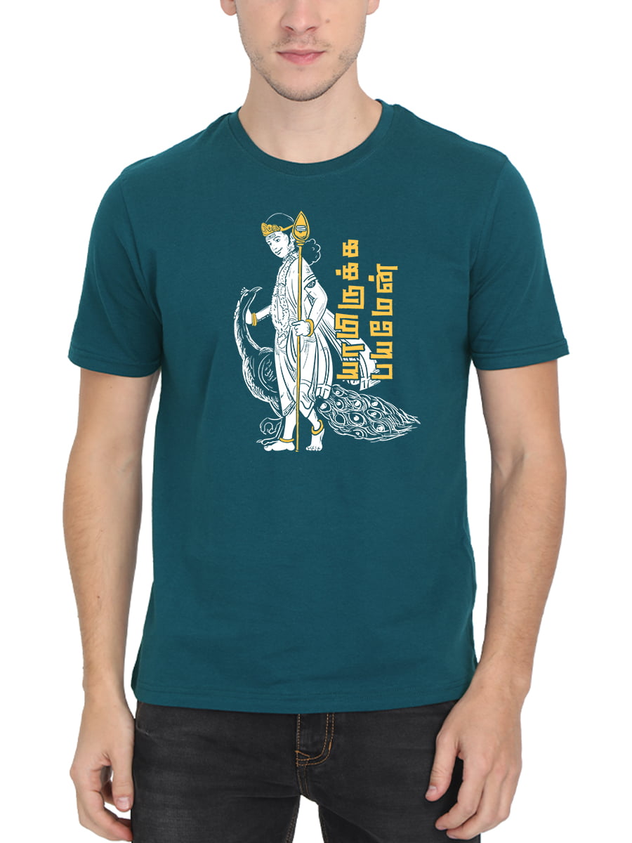 Yamirukka Bayamen Murugan T-Shirt features a striking design honoring Lord Murugan, offering a blend of spiritual significance and modern style in a comfortable fit.